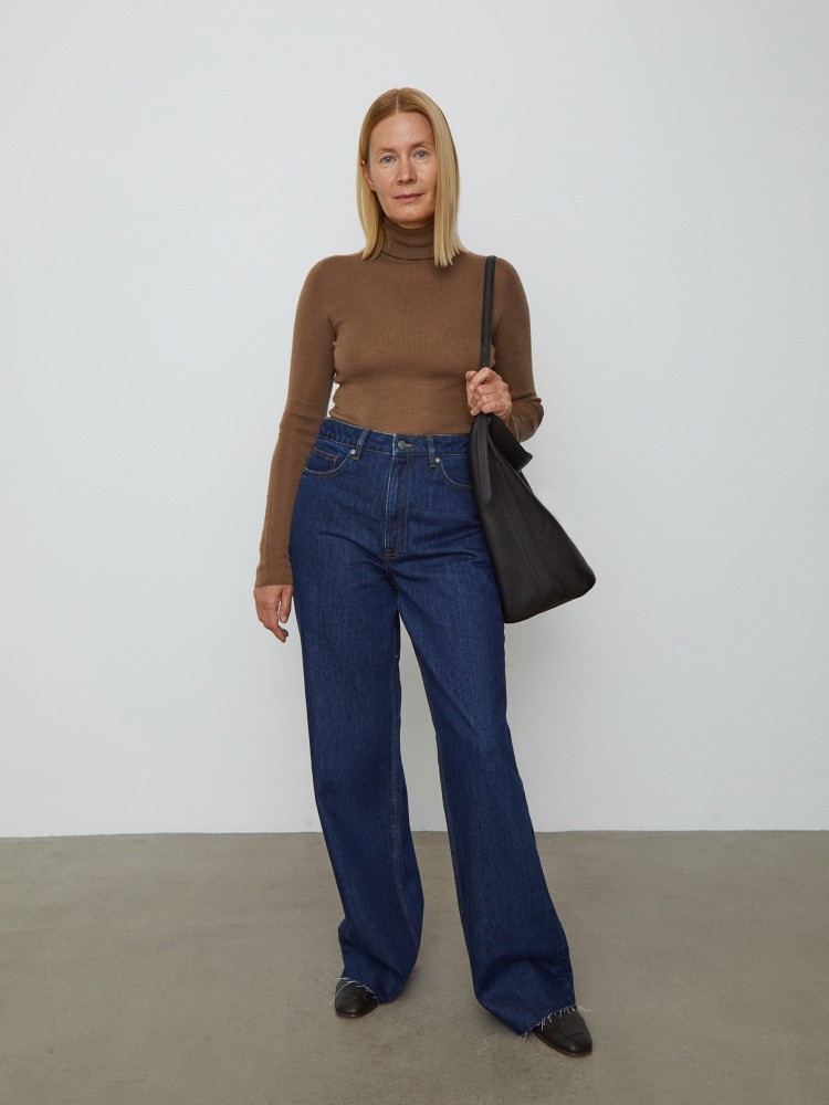 Широкие джинсы с высокой посадкой визуально удлиняют силуэт — этот эффект можно усилить, если надеть джинсы с босоножками на высоком каблуке. Для модели выбрали плотный деним (13,5 Oz) в оттенке Rinse: постепенно на нем будут проступать эффекты и естественные потертости, отражающие, как их любят носить.Сделано в Сербии.