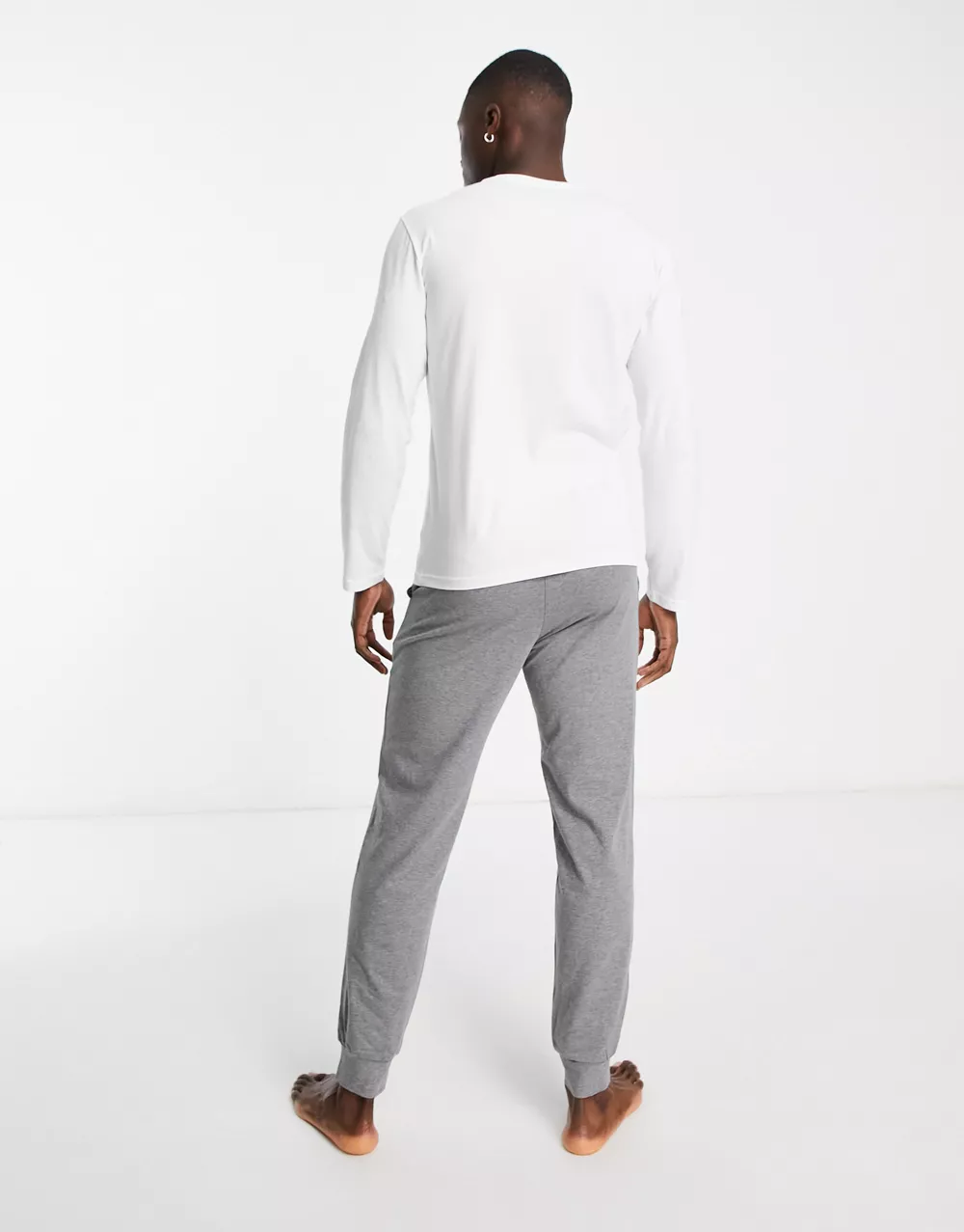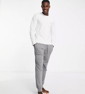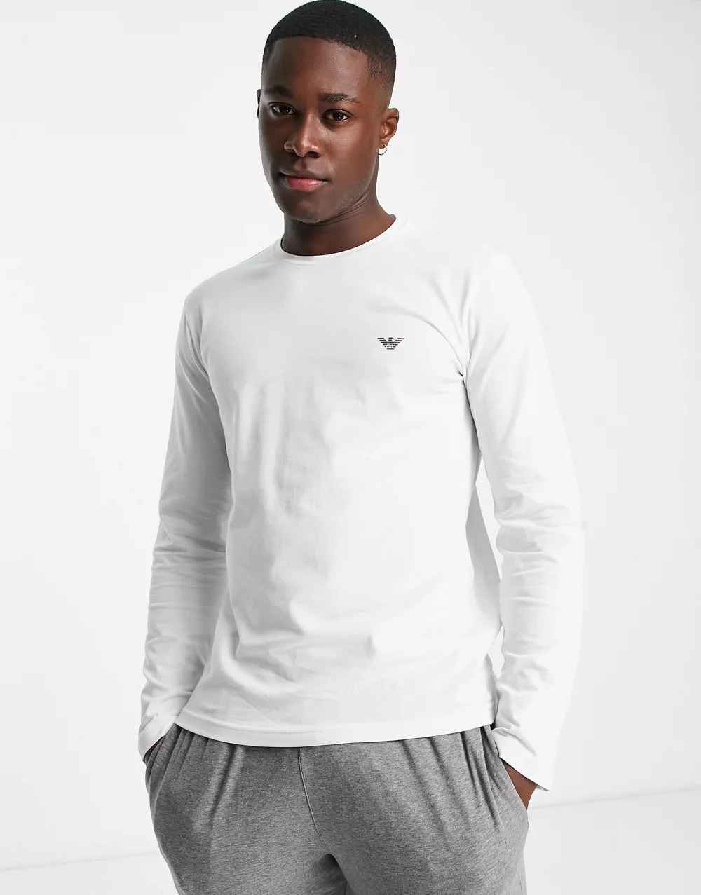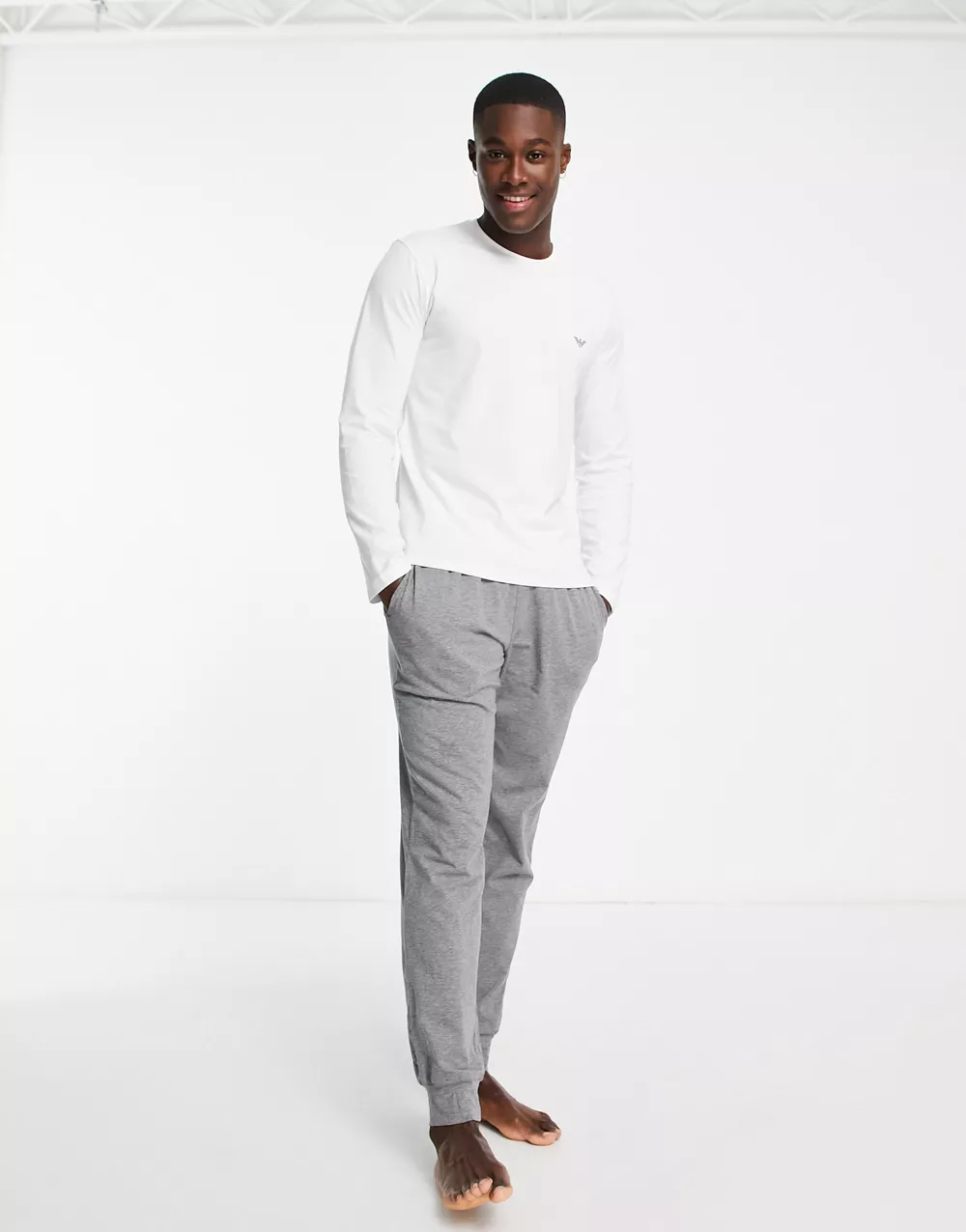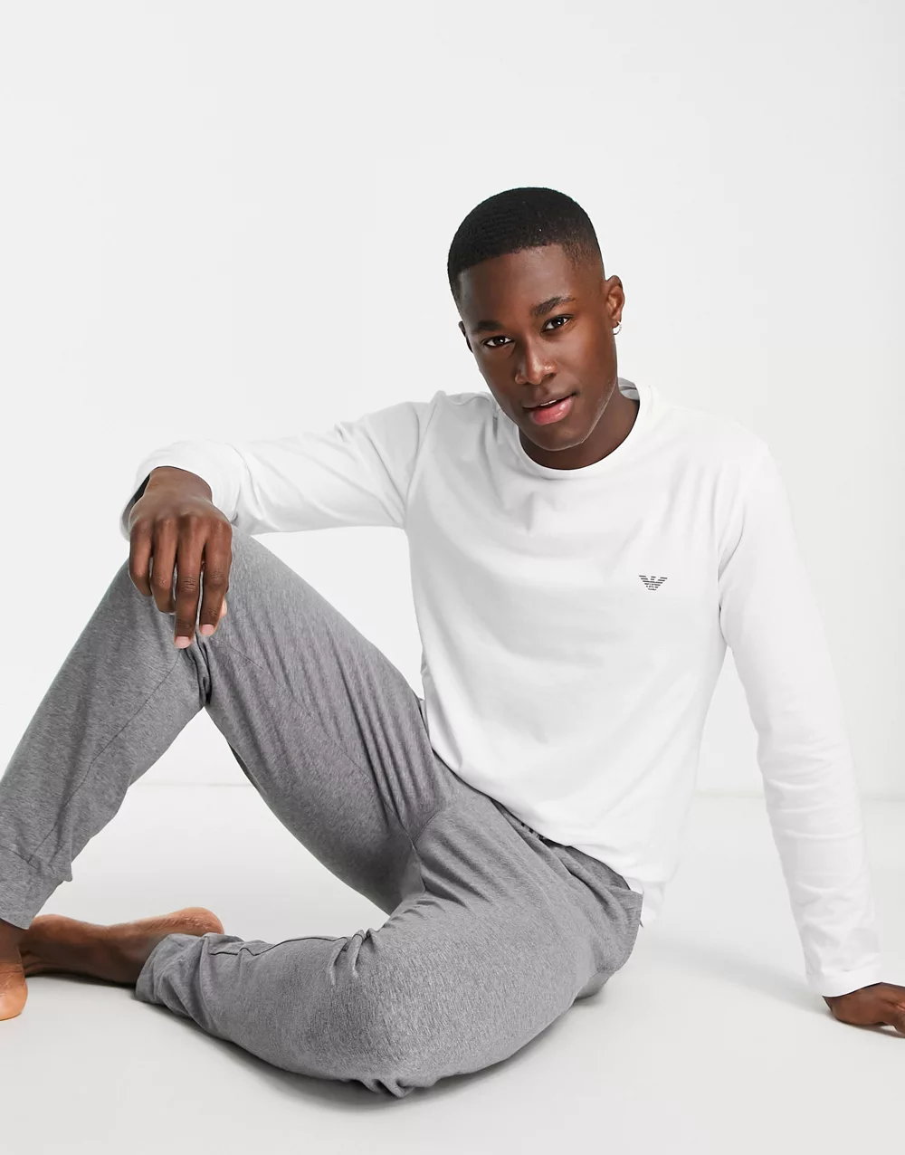 - Emporio Armani Bodywear long sleeve top and lounge joggers in white and grey
