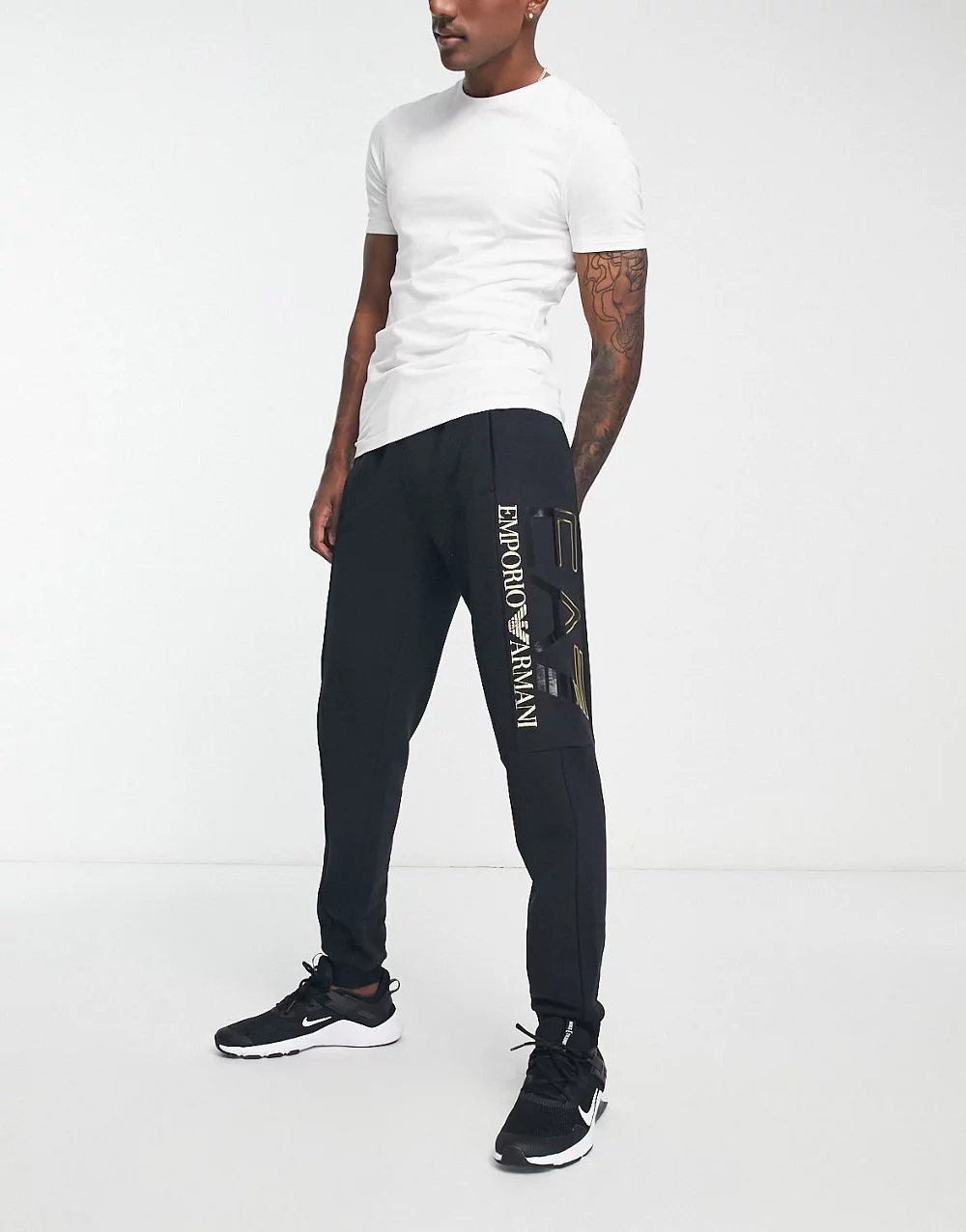 - Emporio Armani EA7 oversized logo joggers in black