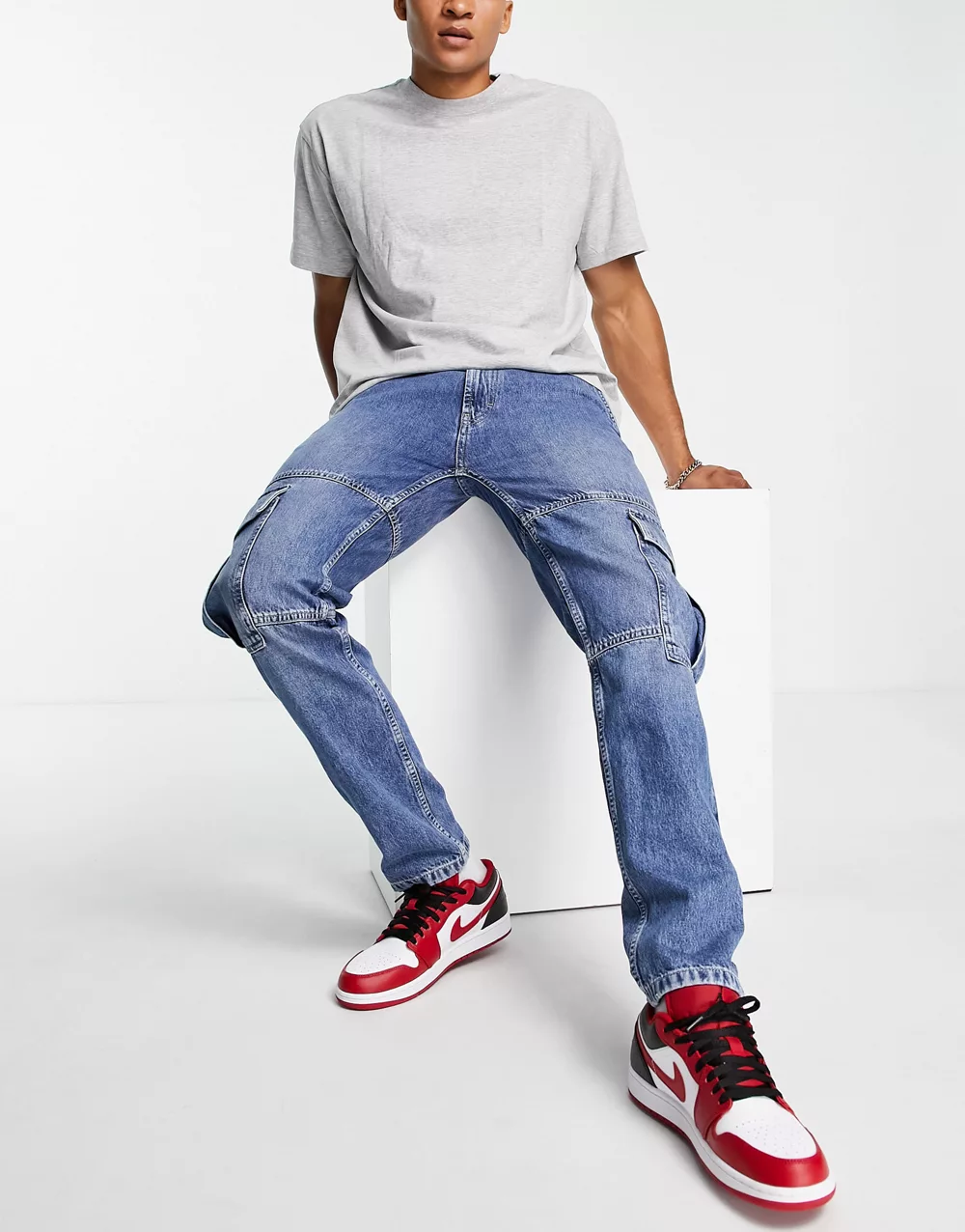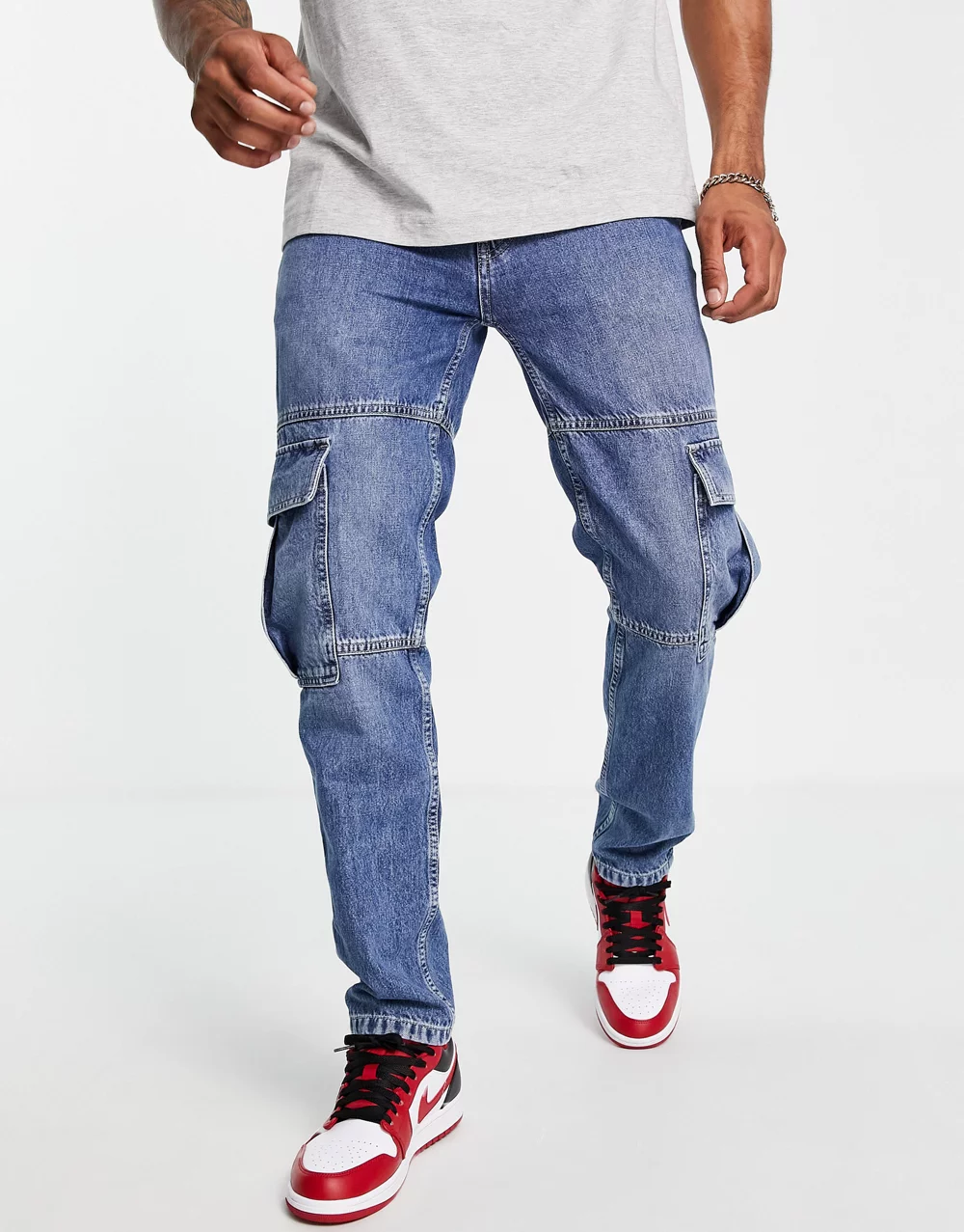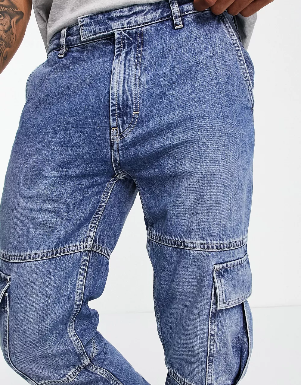 - HUGO 634/2 tapered fit cargo jeans in mid blue