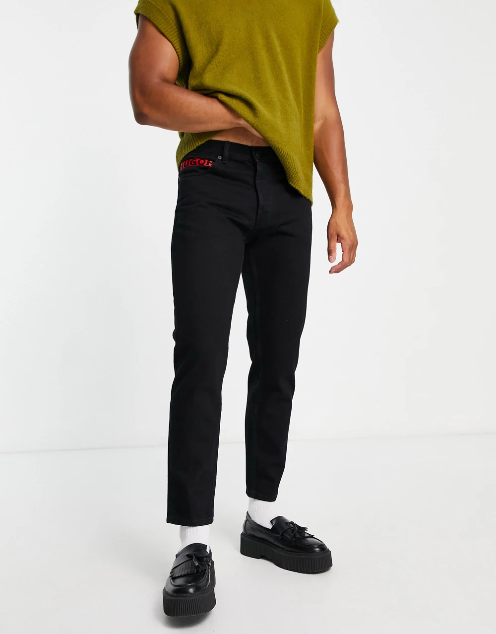 - HUGO 634/3 tapered fit jeans in black