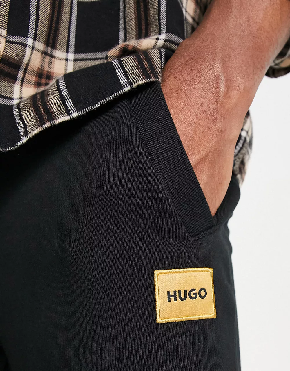 - HUGO Doak regular fit gold logo joggers in black