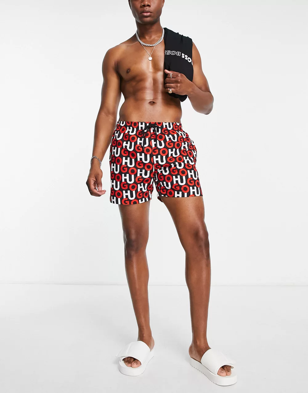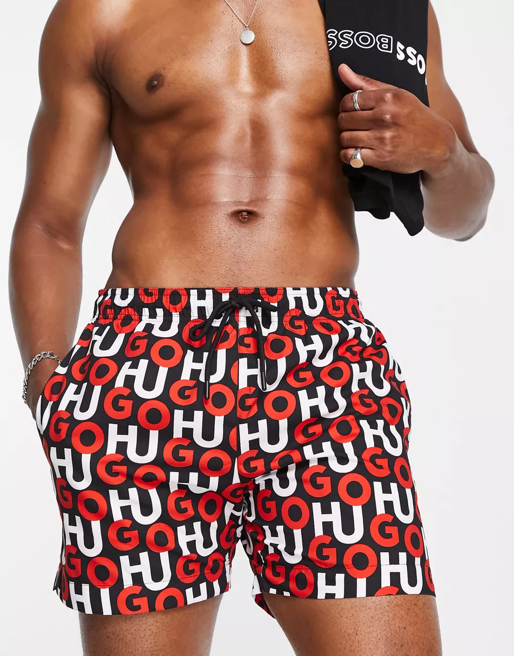 - HUGO Swimwear Kook all over logo swim shorts in red