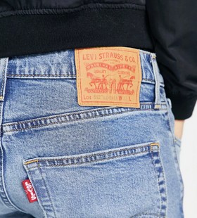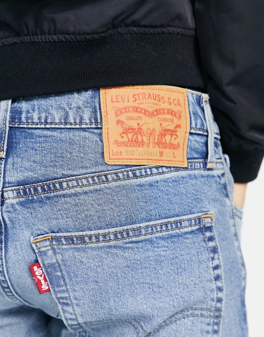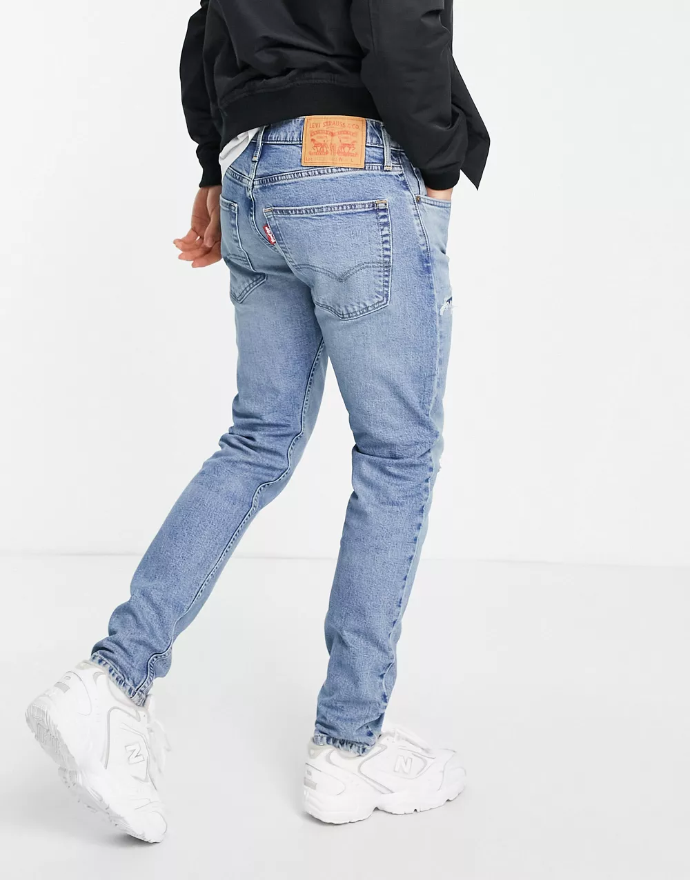 - Levi's 512 slim taper jeans with distressing in light blue wash