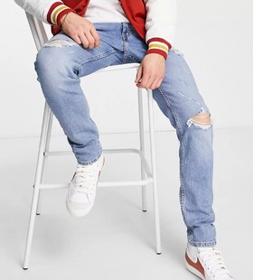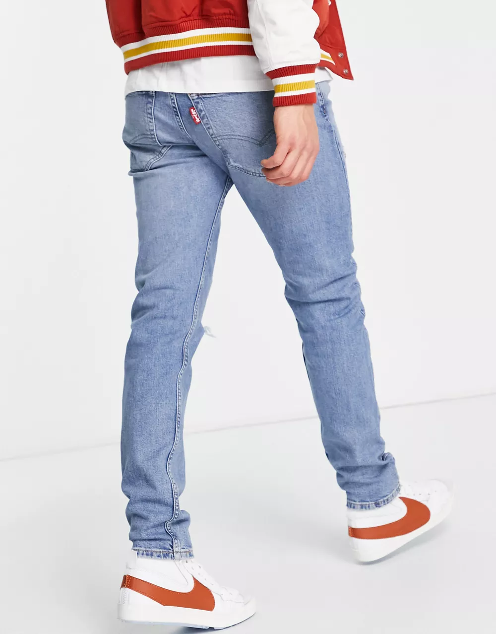- Levi's 512 slim taper lo ball jeans in light blue wash with rips