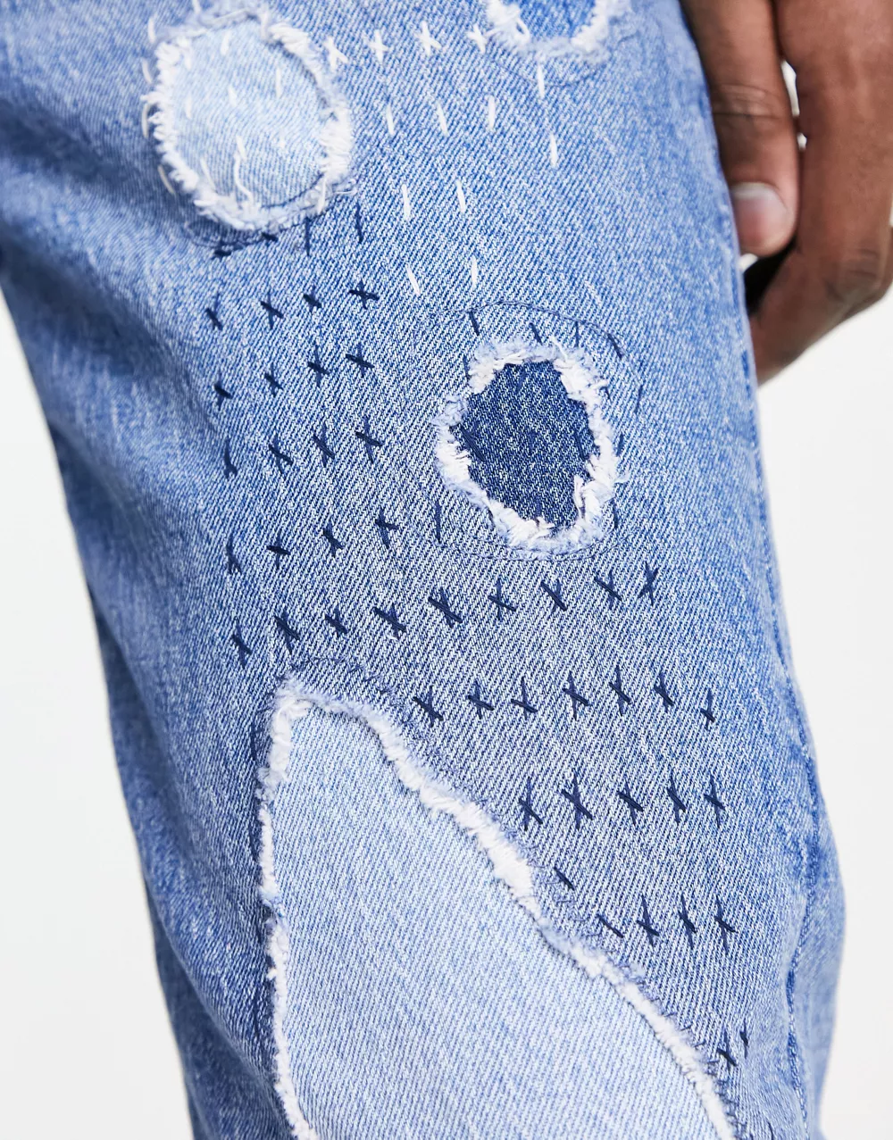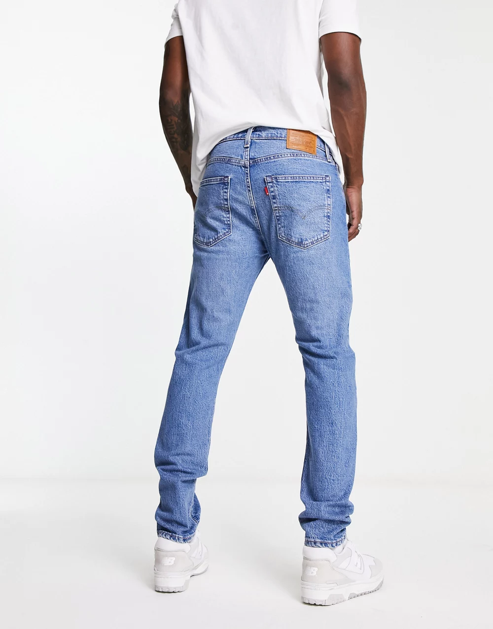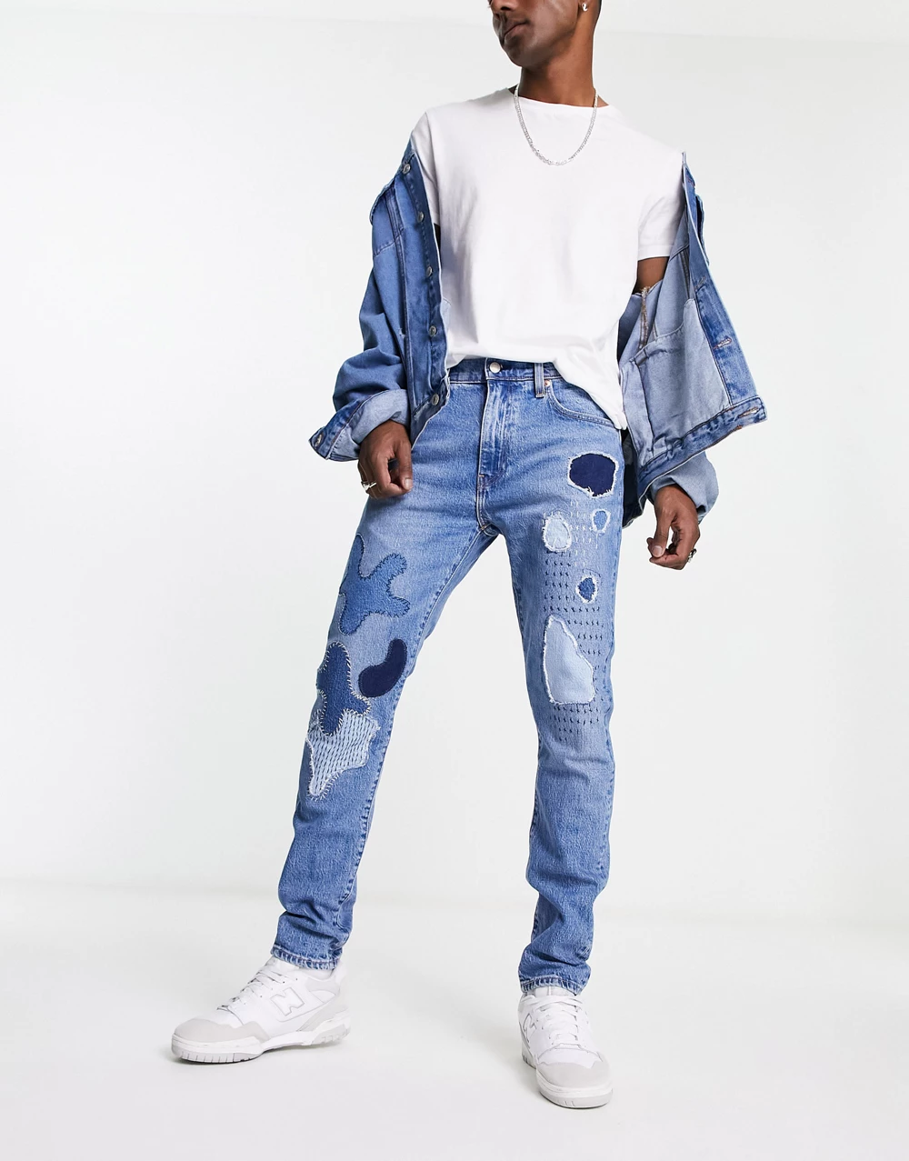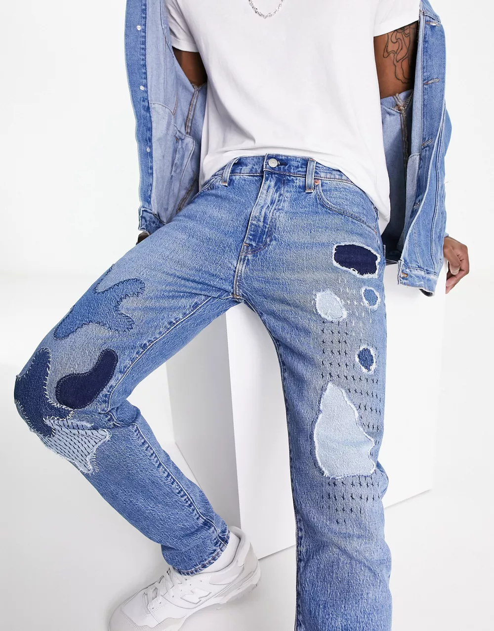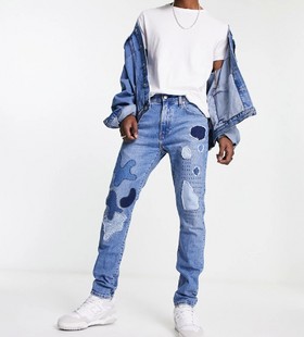 - Levi's 512 slim tapered fit jeans in blue with patchwork and destruction