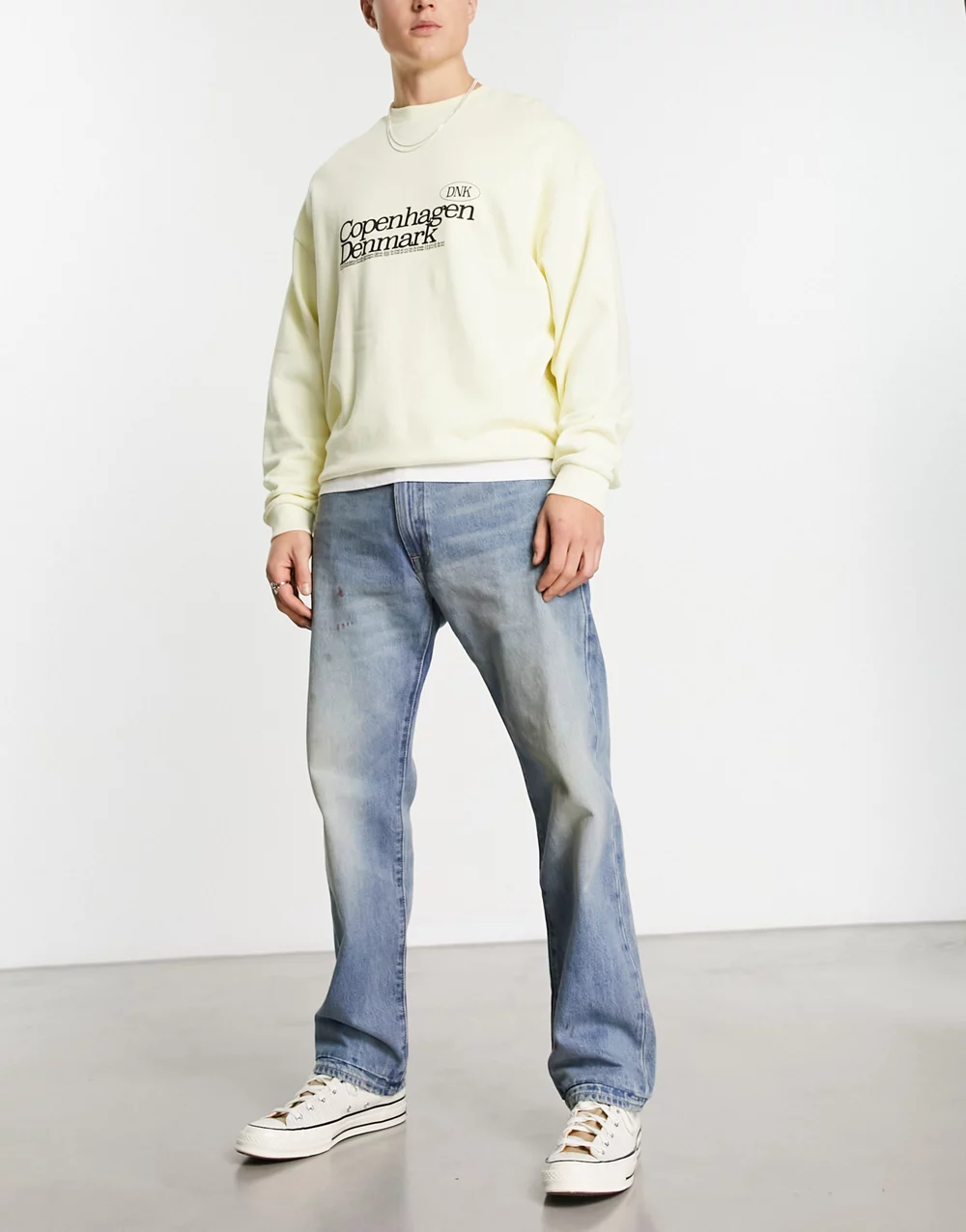 - Levi's 551z authentic straight fit jeans in vintage light blue wash with paint marks