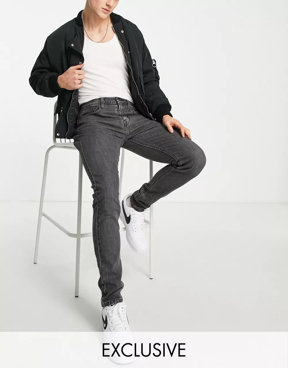 - Levi's x ASOS exclusive 512 slim tapered jeans in black wash with knee abraisons