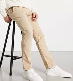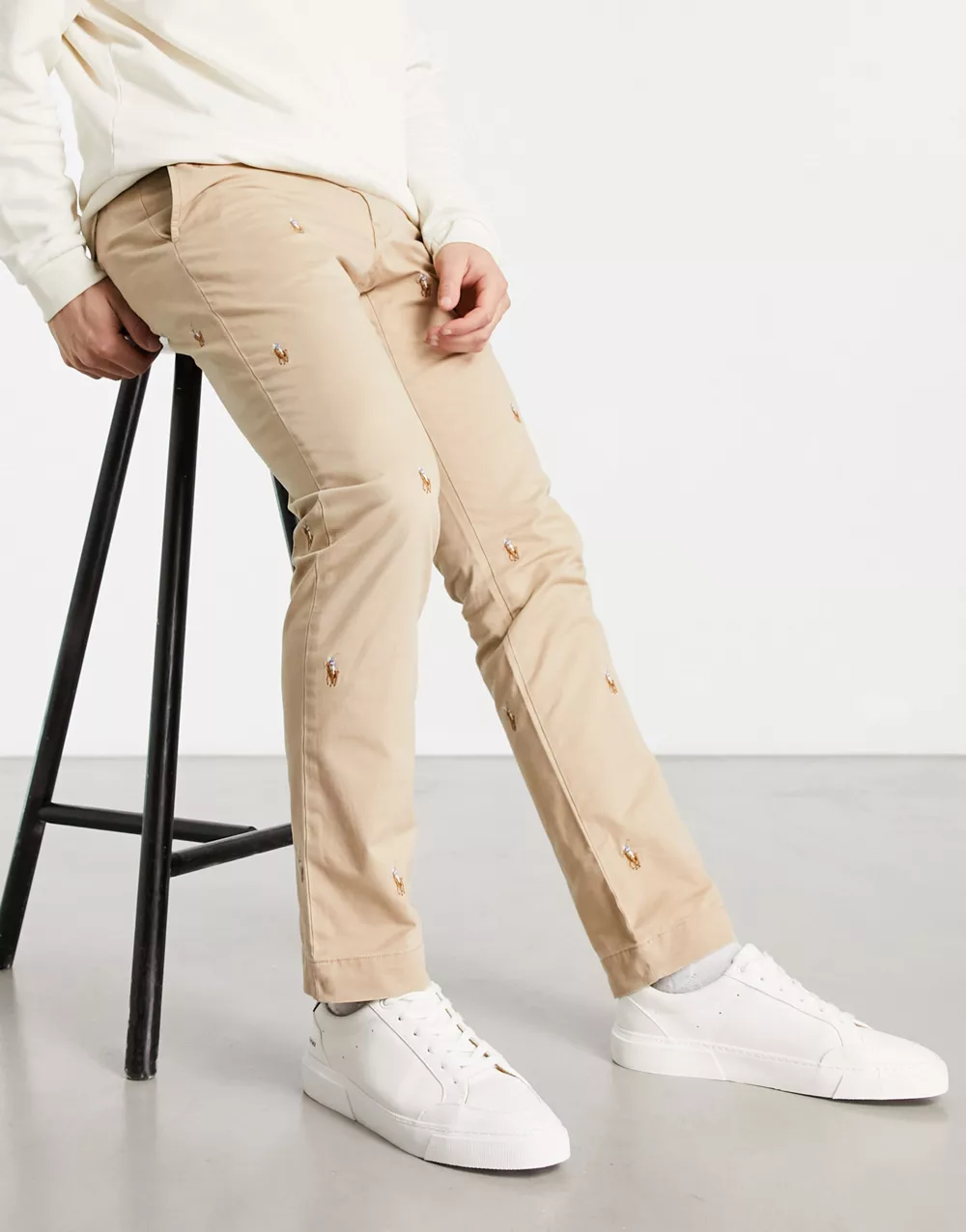 - Polo Ralph Lauren all over pony logo slim fit chinos in beige