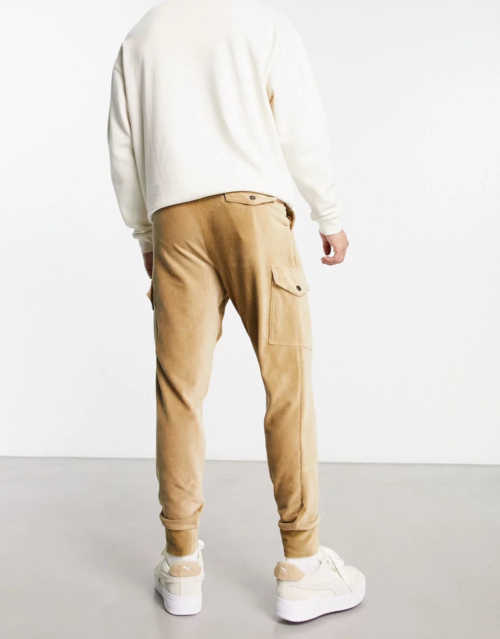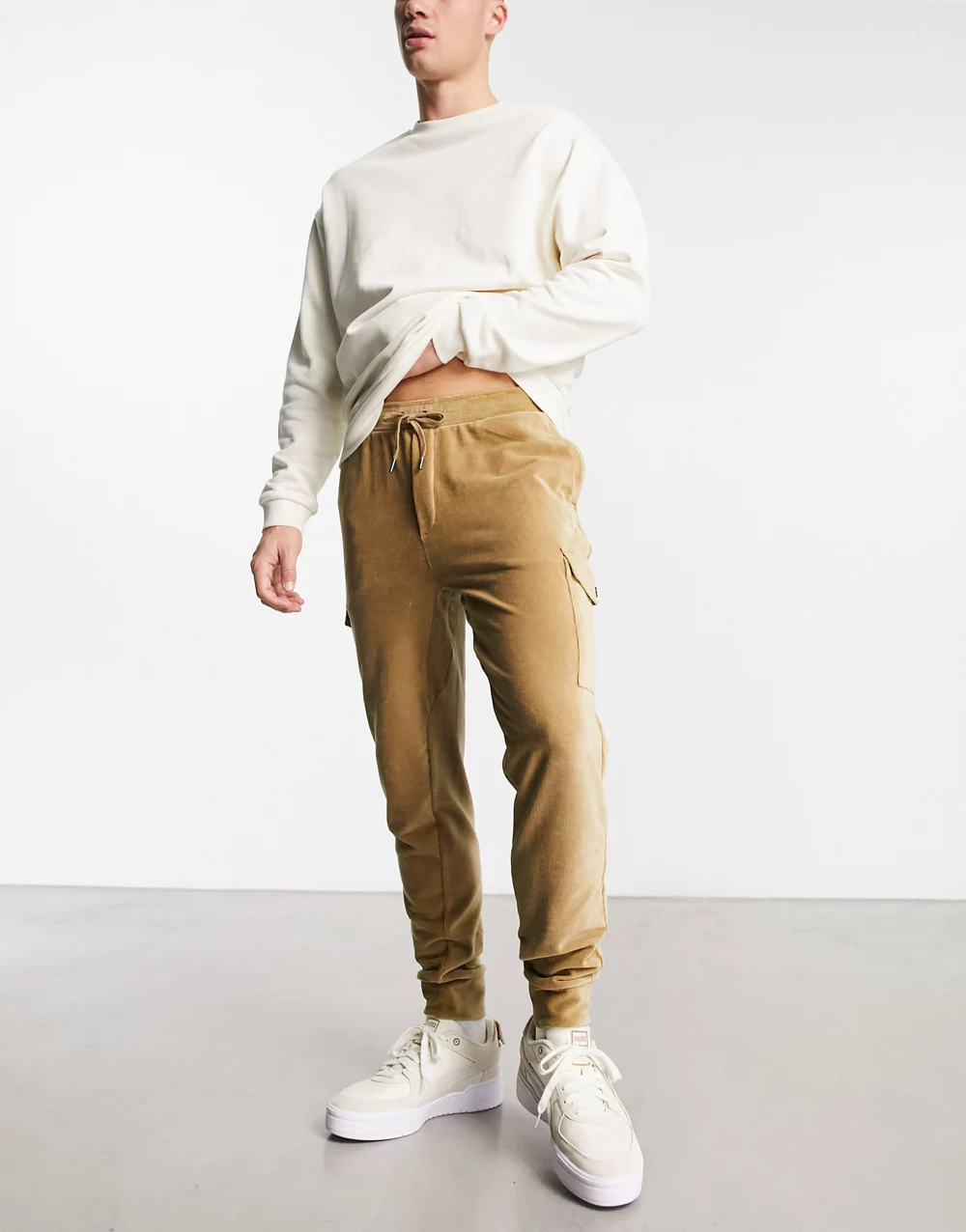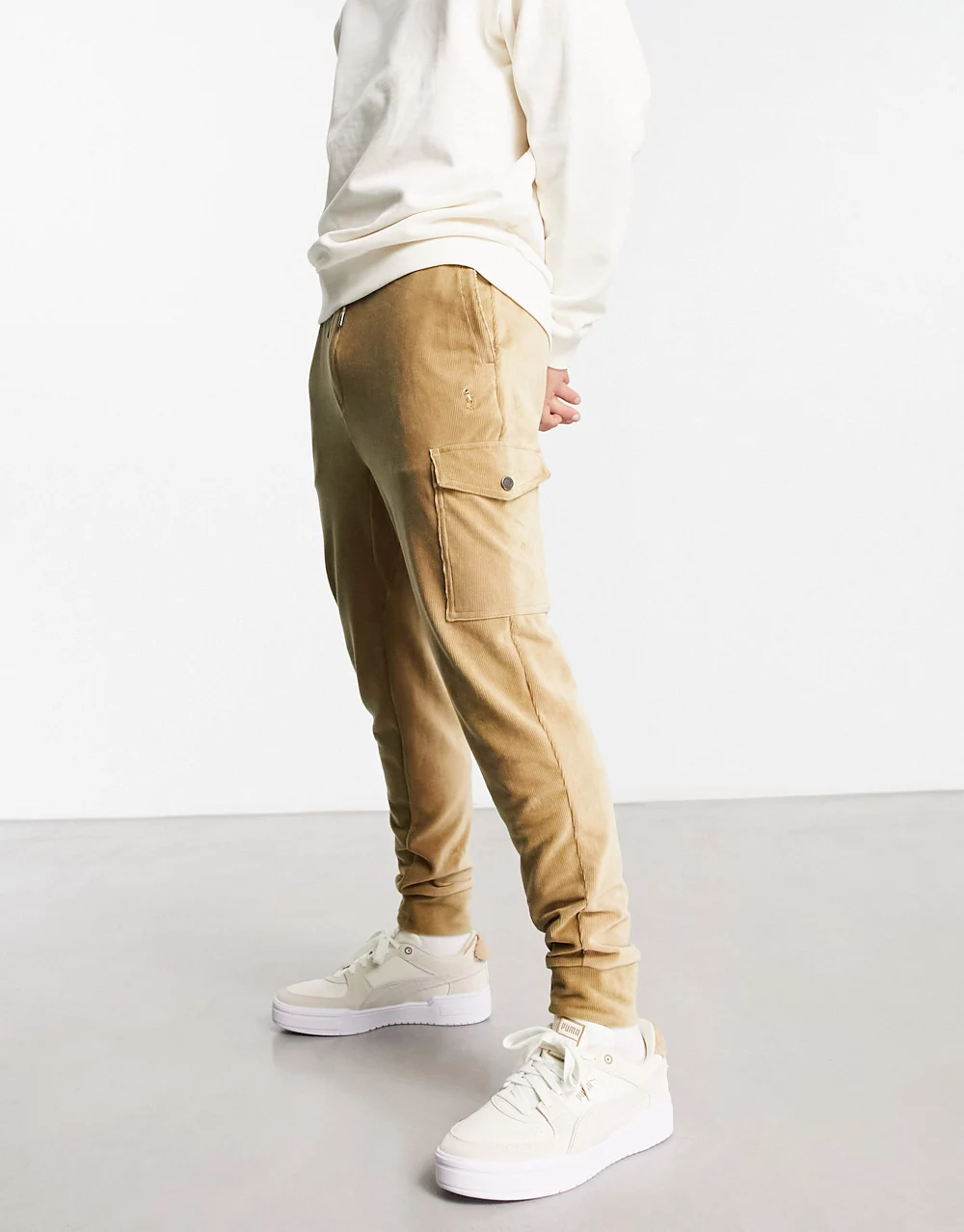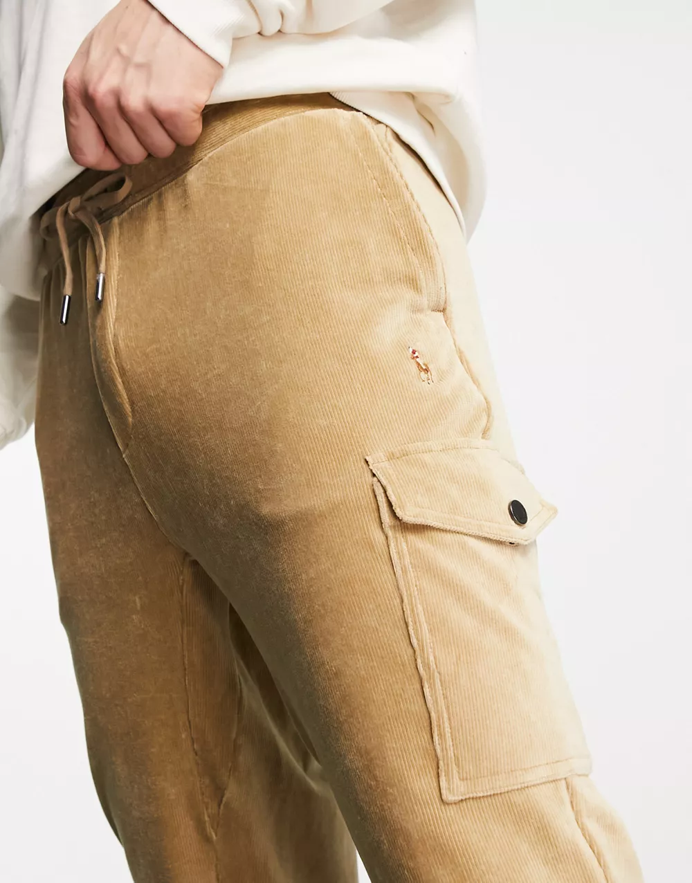 - Polo Ralph Lauren cord sweat cargo joggers in khaki tan