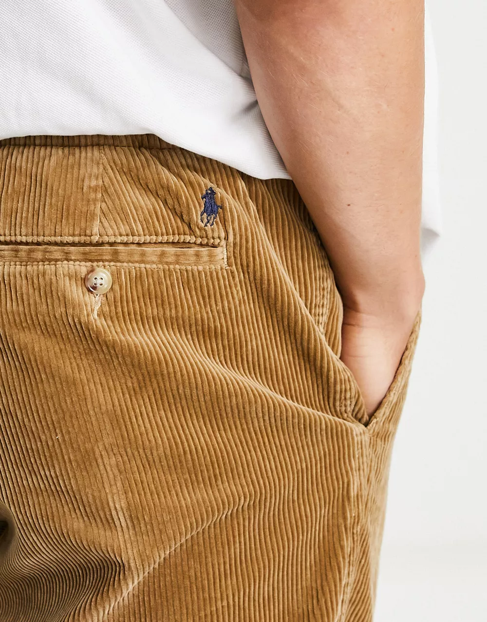 - Polo Ralph Lauren icon logo flat front prepster cord trousers in tan