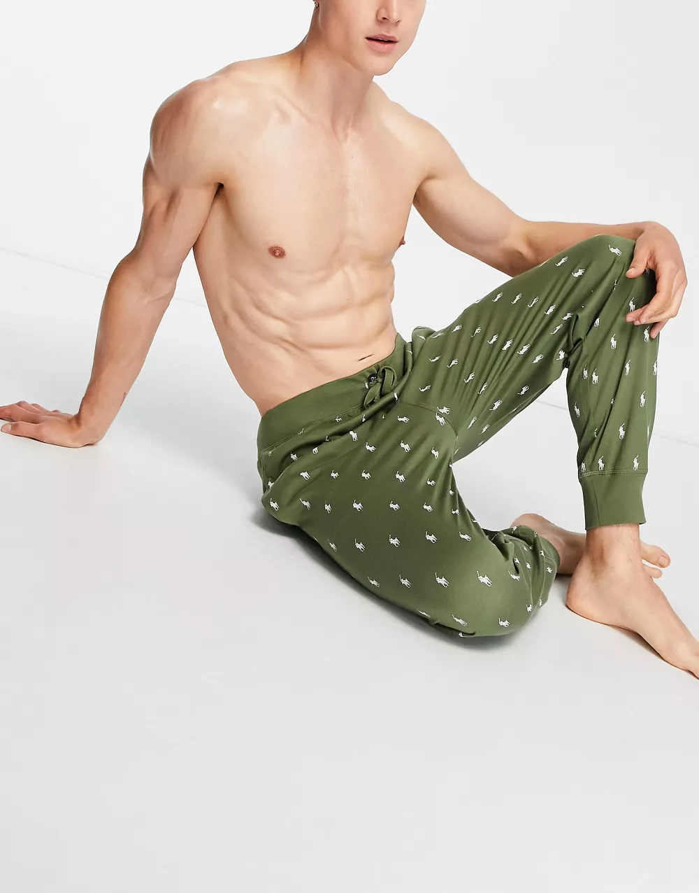 - Polo Ralph Lauren lounge joggers in olive green with all over pony logo