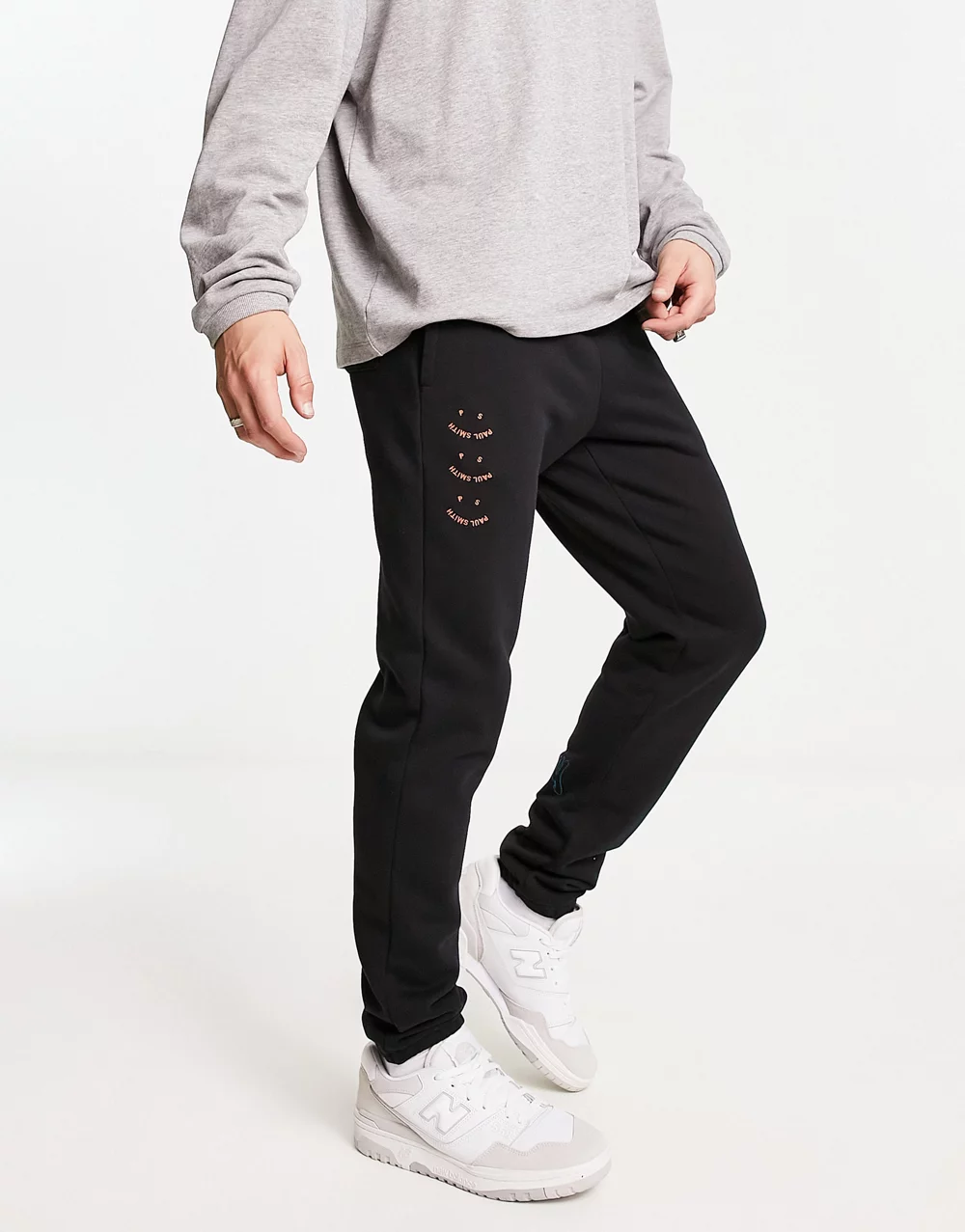 - PS Paul Smith joggers in black with happy 3 in a row scattered graphics