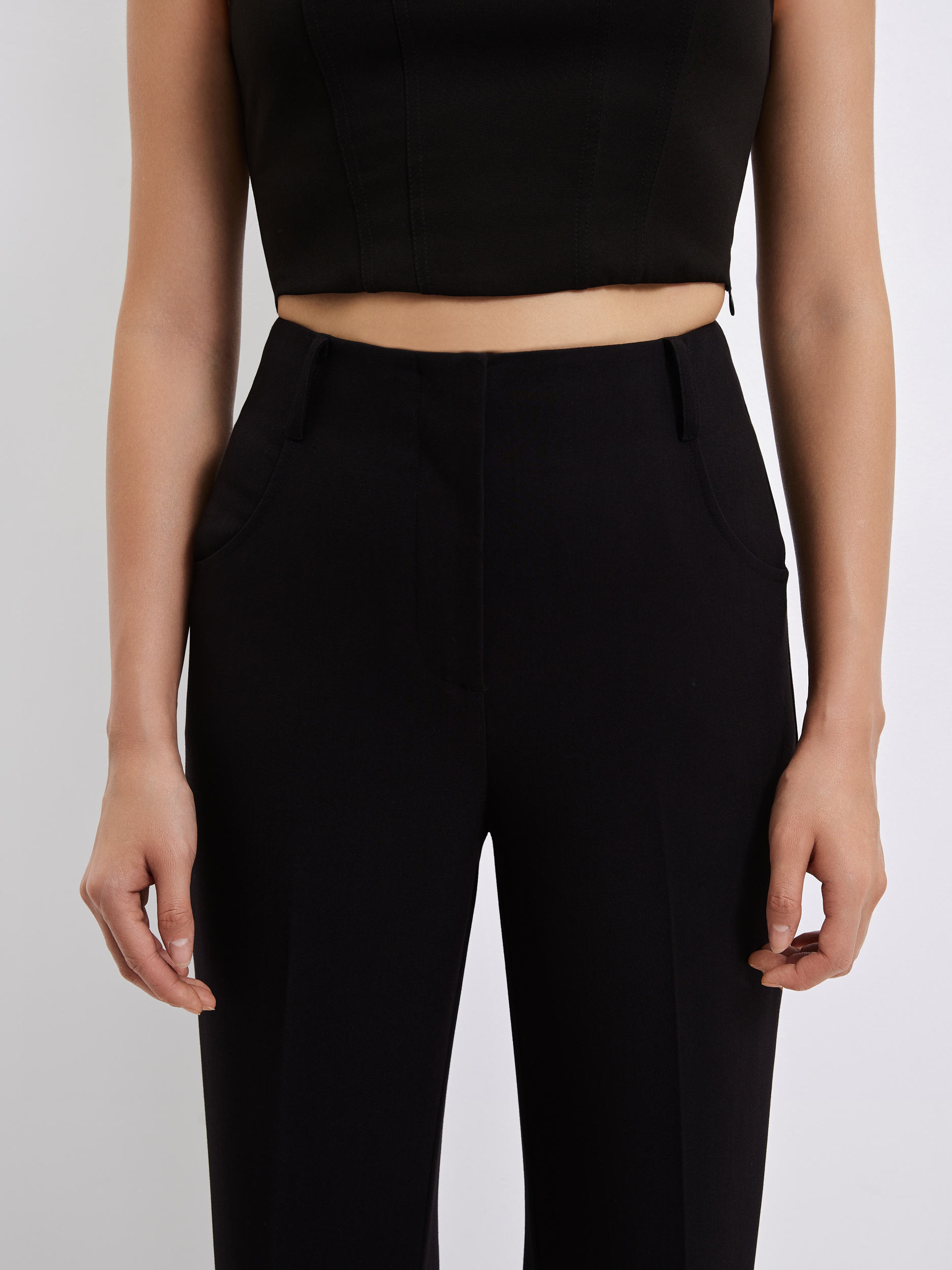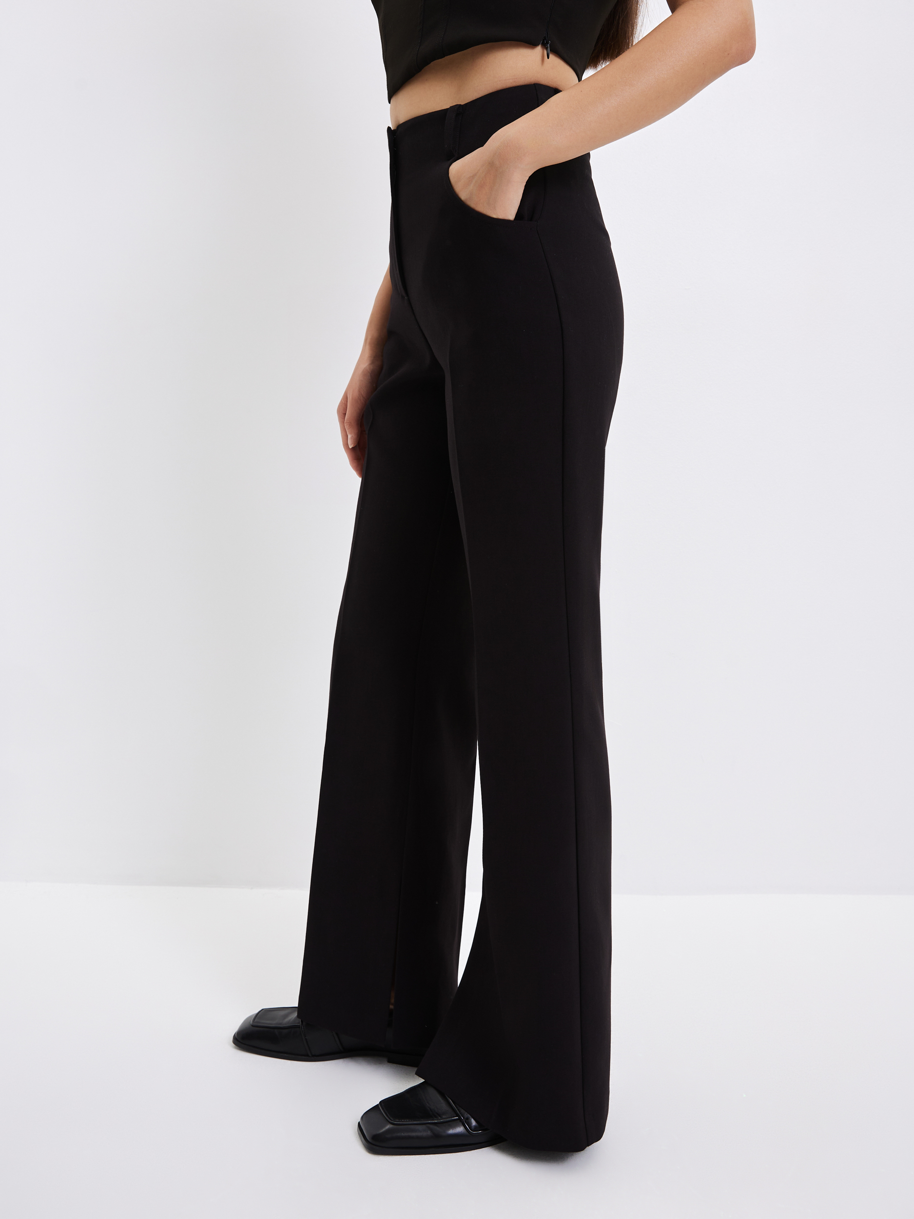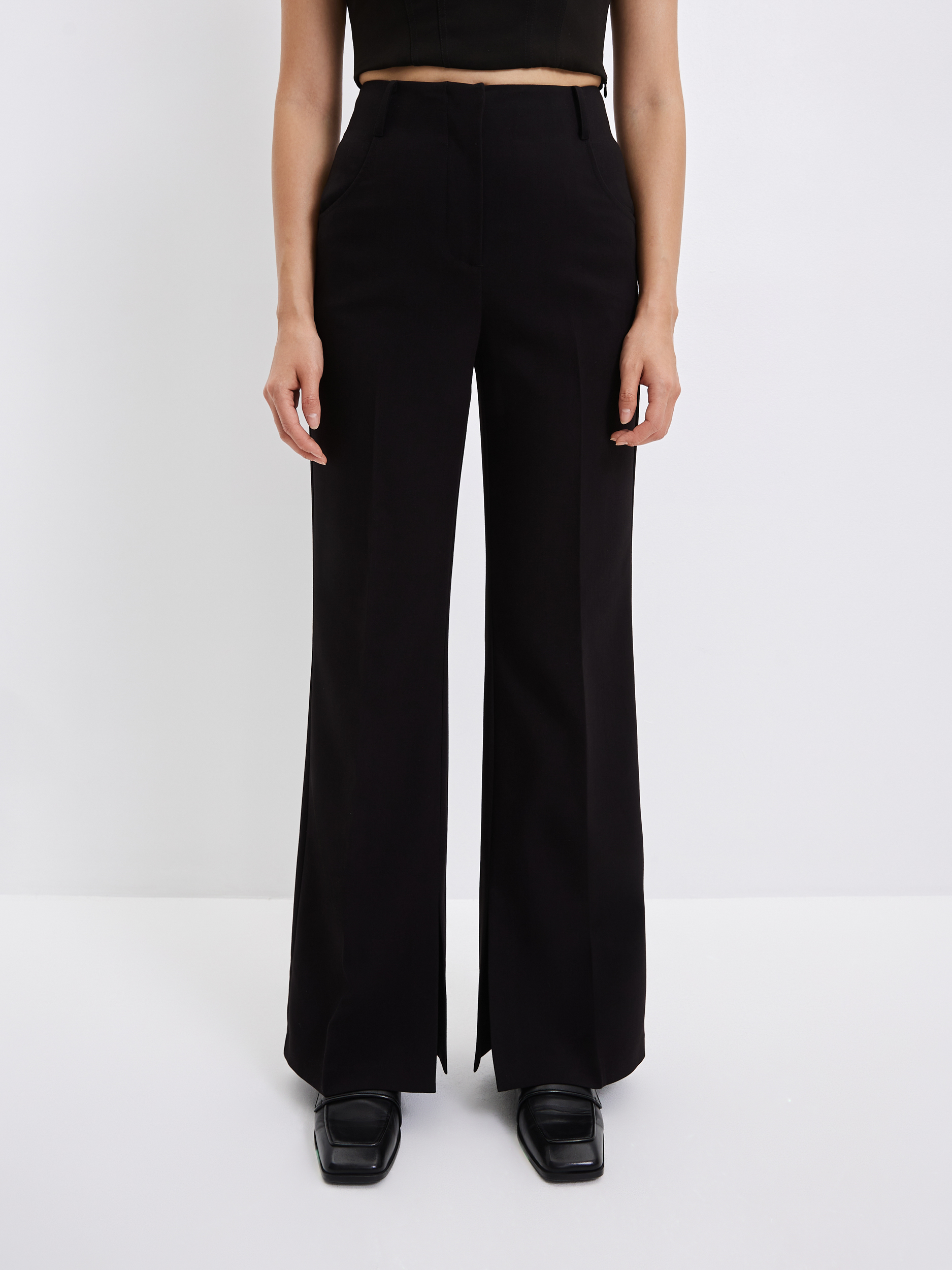 Параметры: Тип посадки: высокая; Застежка: молния; пуговицы; Модель брюк: классические; Тип карманов: 2 боковых кармана