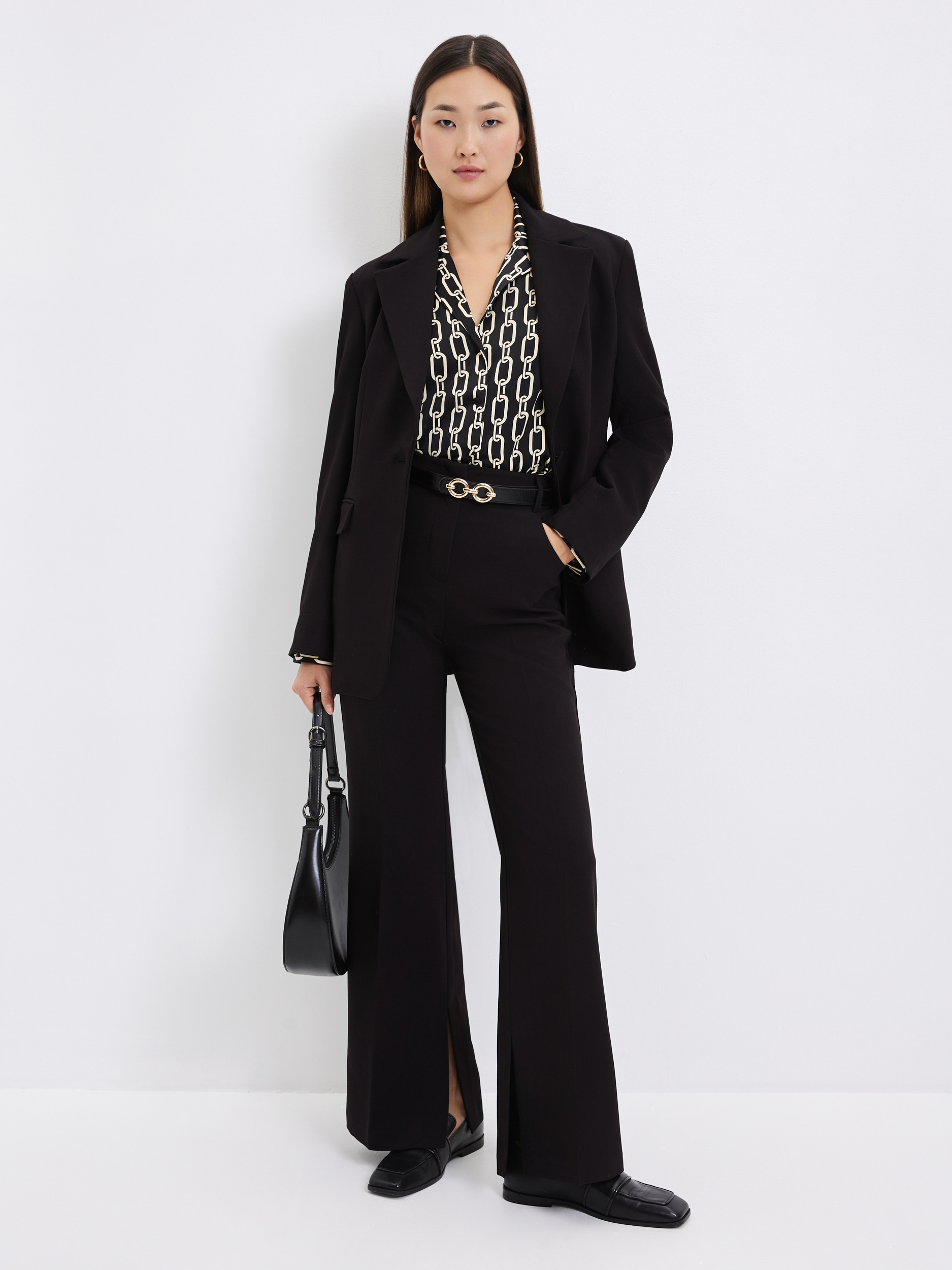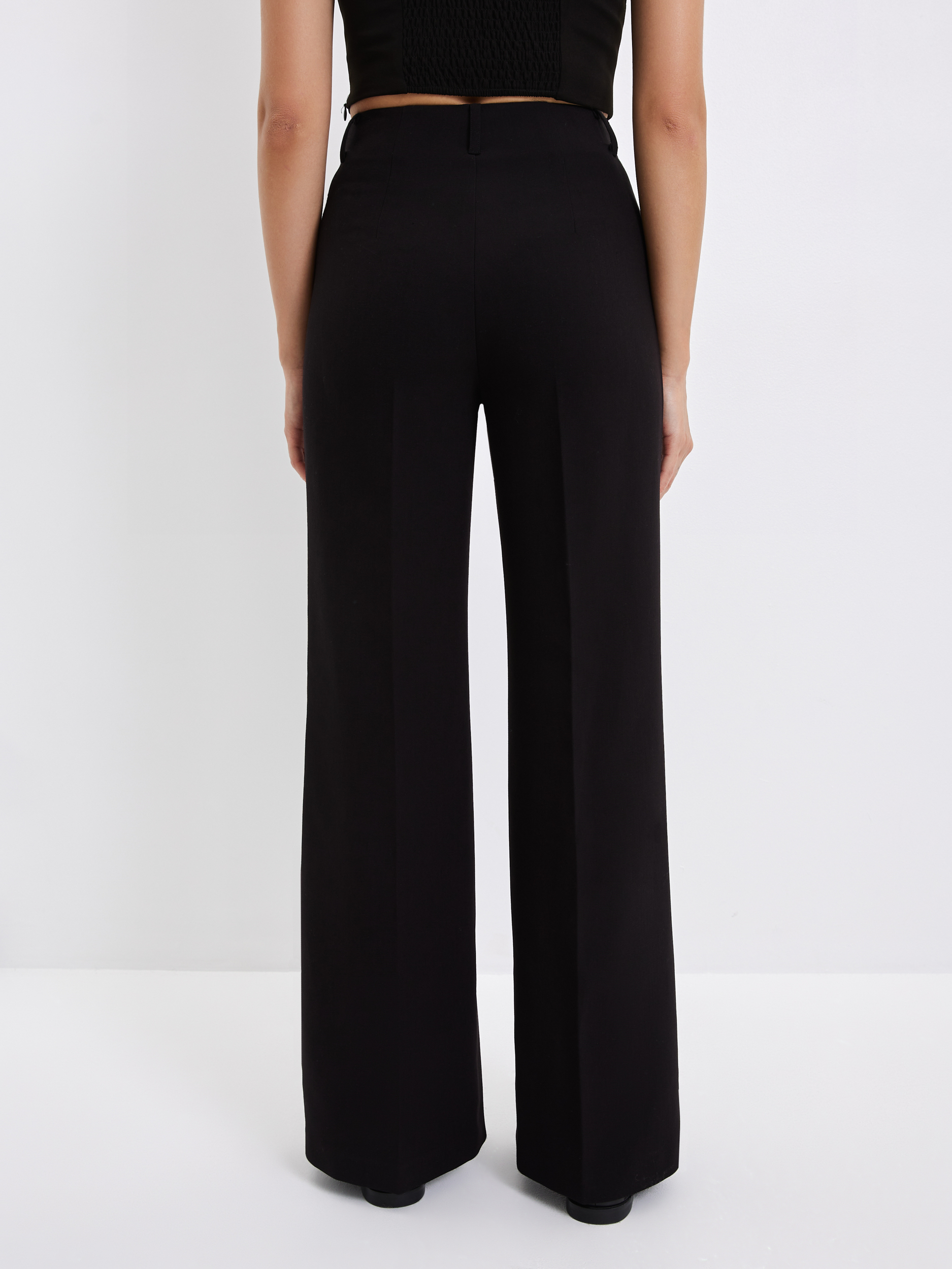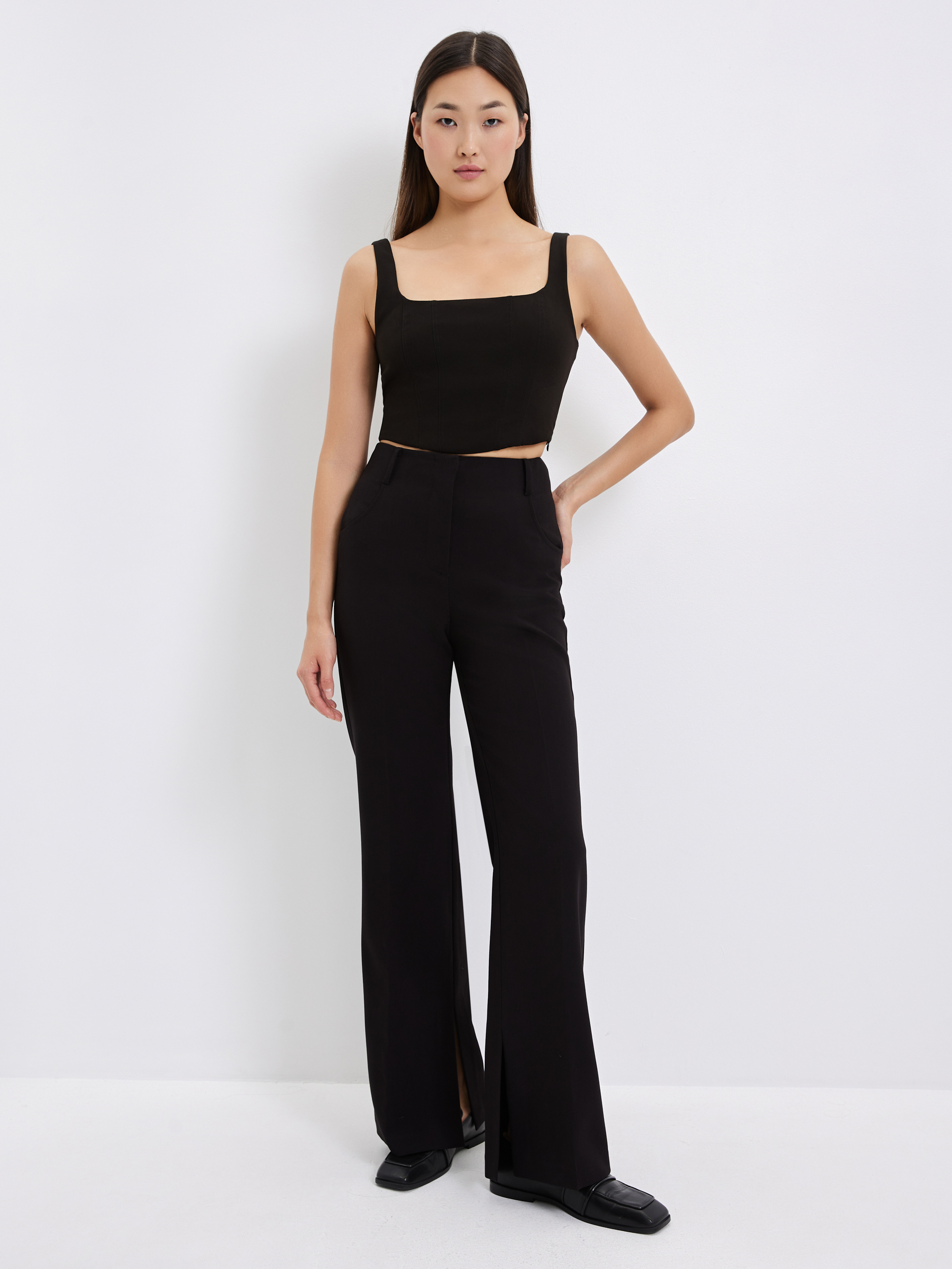 Параметры: Тип посадки: высокая; Застежка: молния; пуговицы; Модель брюк: классические; Тип карманов: 2 боковых кармана