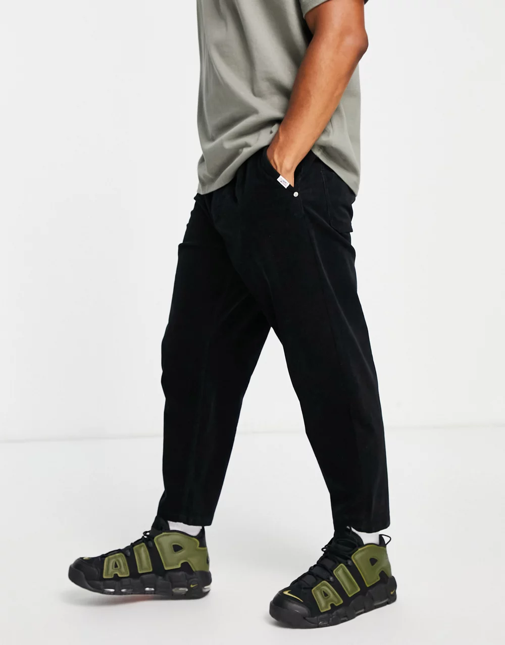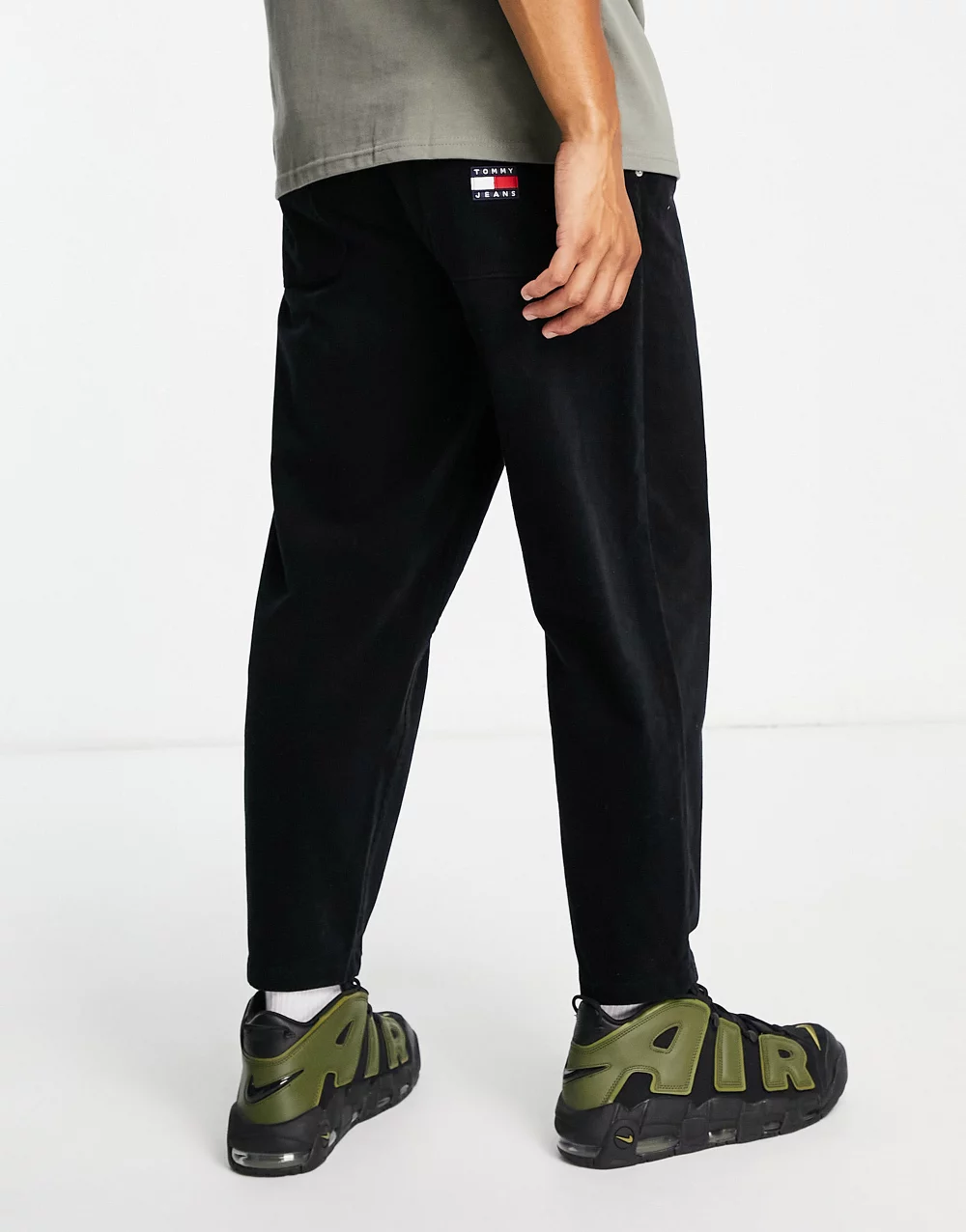 - Tommy Jeans cotton blend bax pleated tapered cord chinos in black
