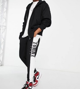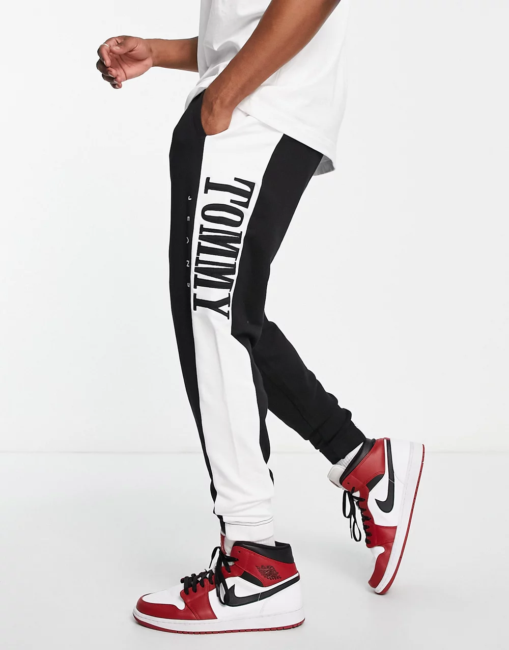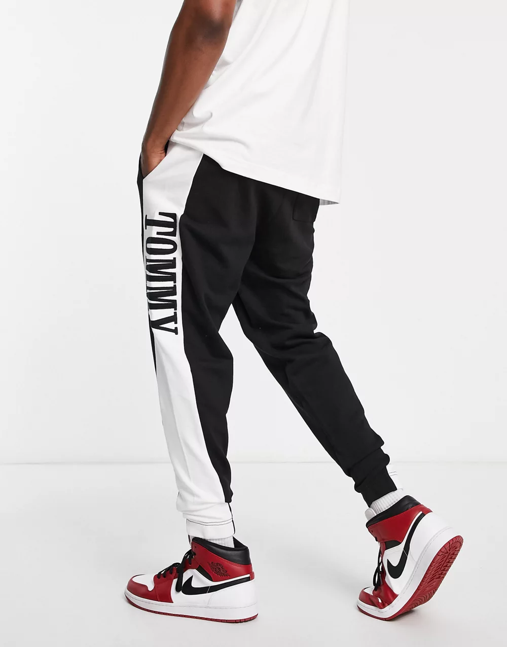 - Tommy Jeans serif logo colourblock cuffed joggers in black