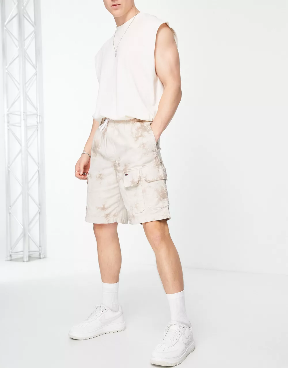 - Tommy Jeans x ASOS exclusive collegiate capsule tie dye belted twill cargo shorts in multi