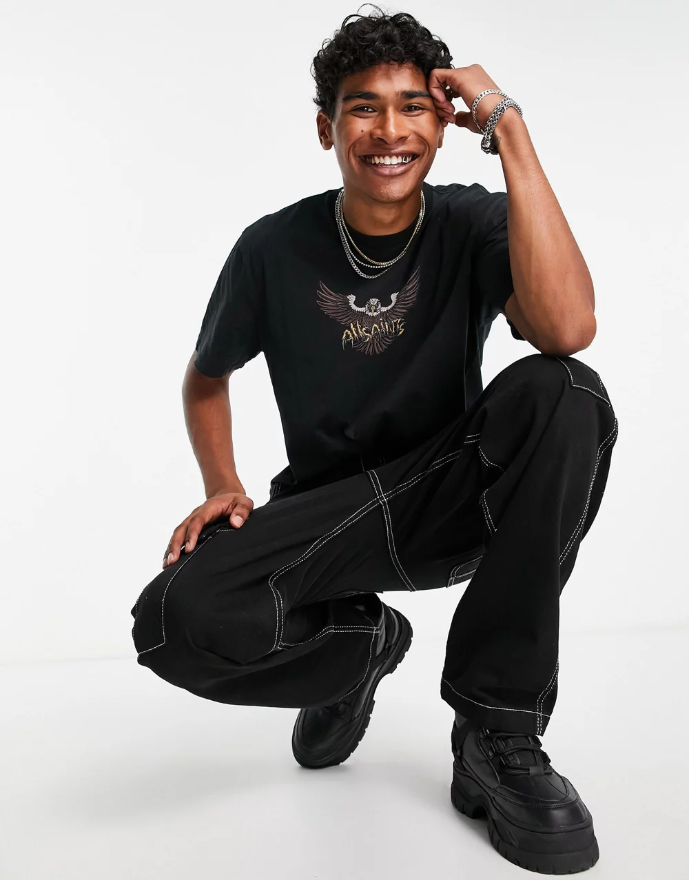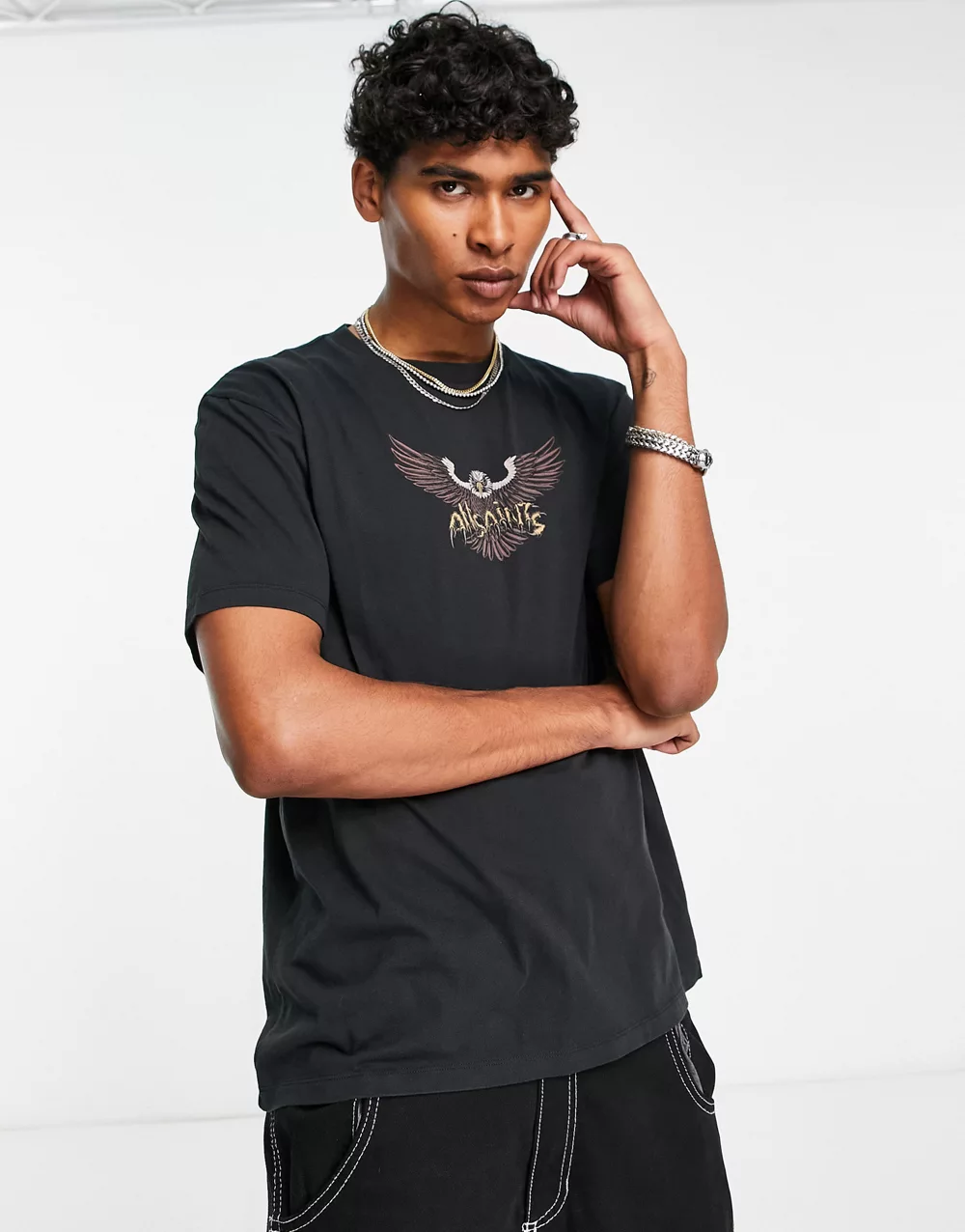 - AllSaints Swoopy graphic t-shirt in washed black