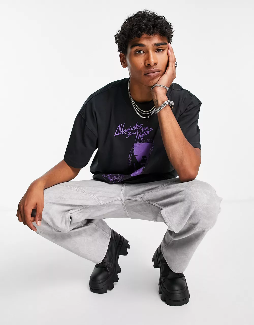 - AllSaints Theque graphic t-shirt in washed black