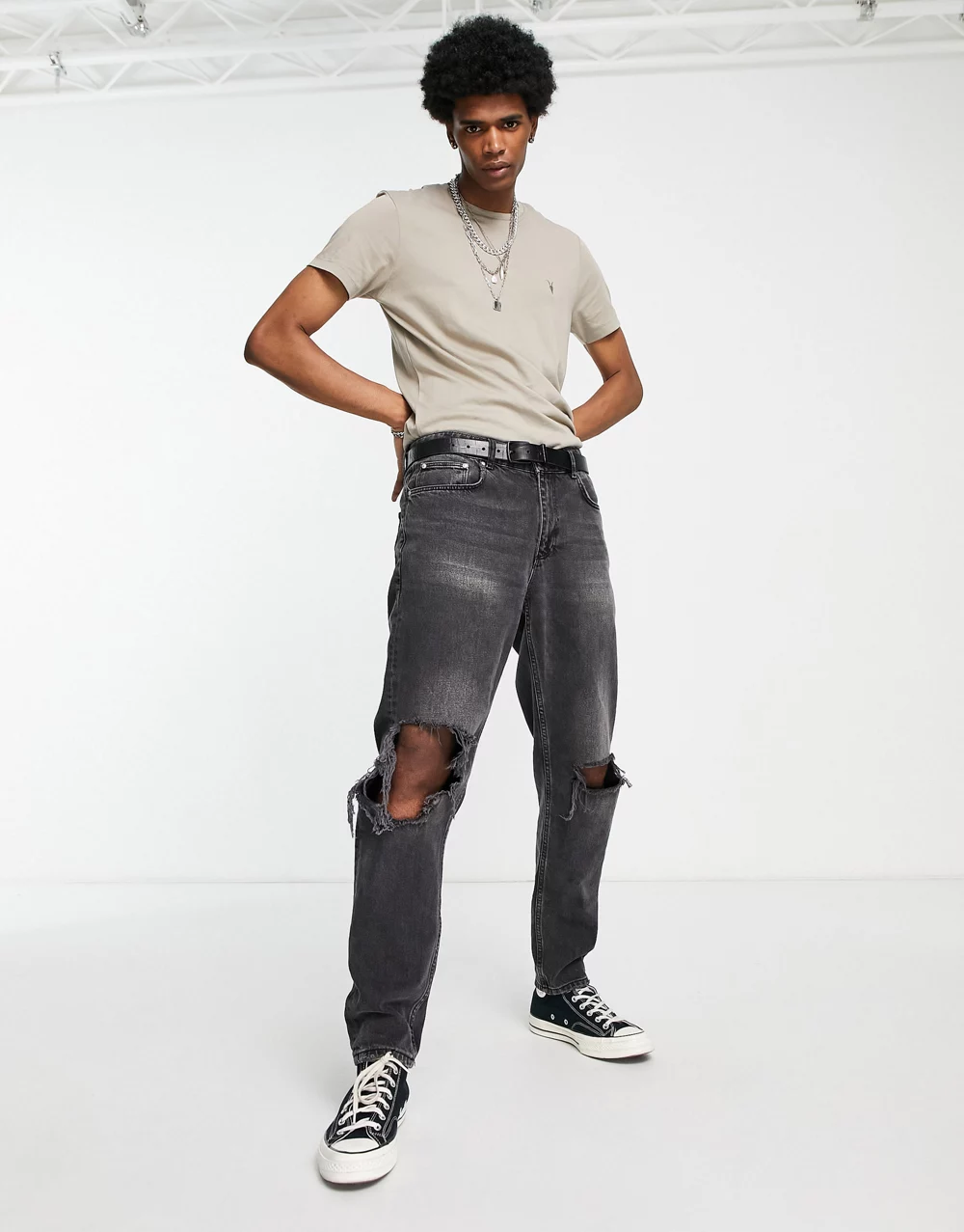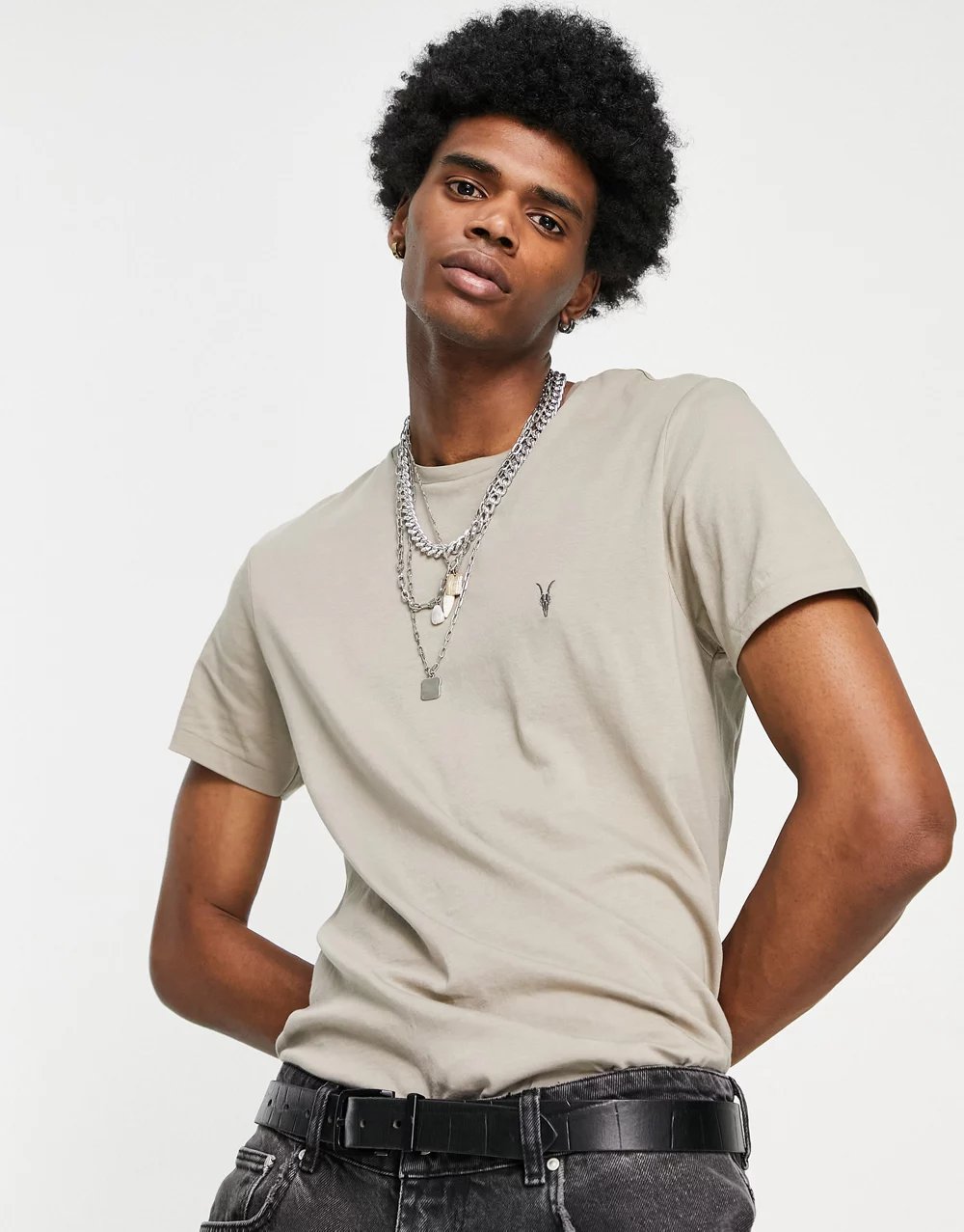 - AllSaints Tonic crew t-shirt in grey