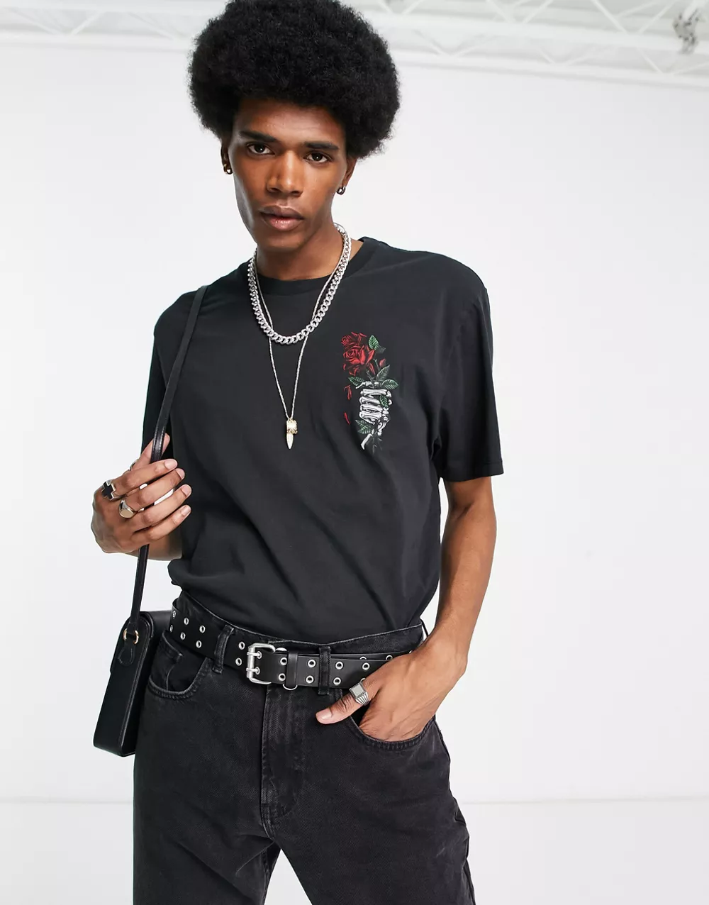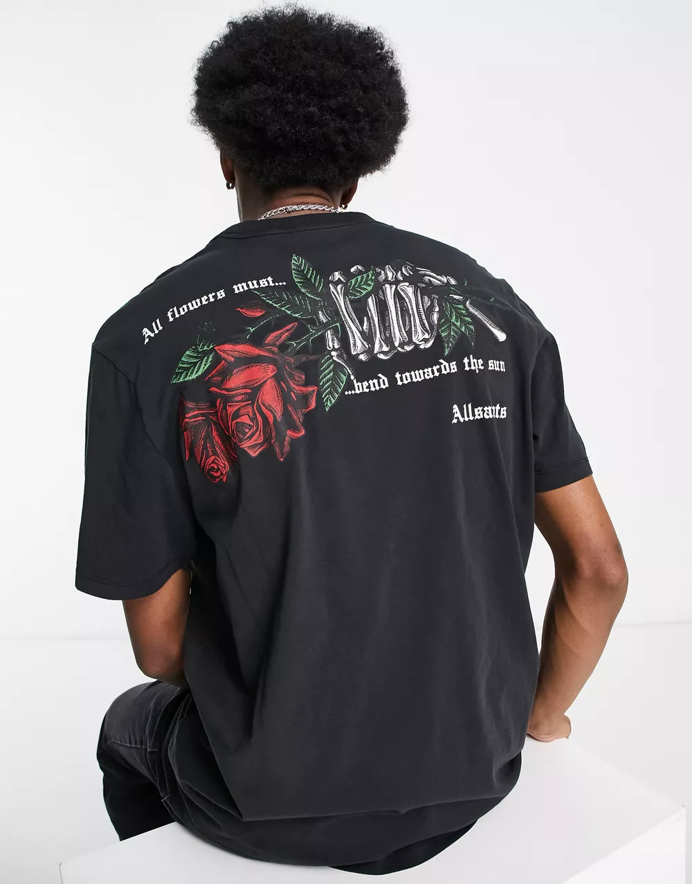 - AllSaints Wilt t-shirt in washed black with back print Exclusive to ASOS