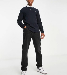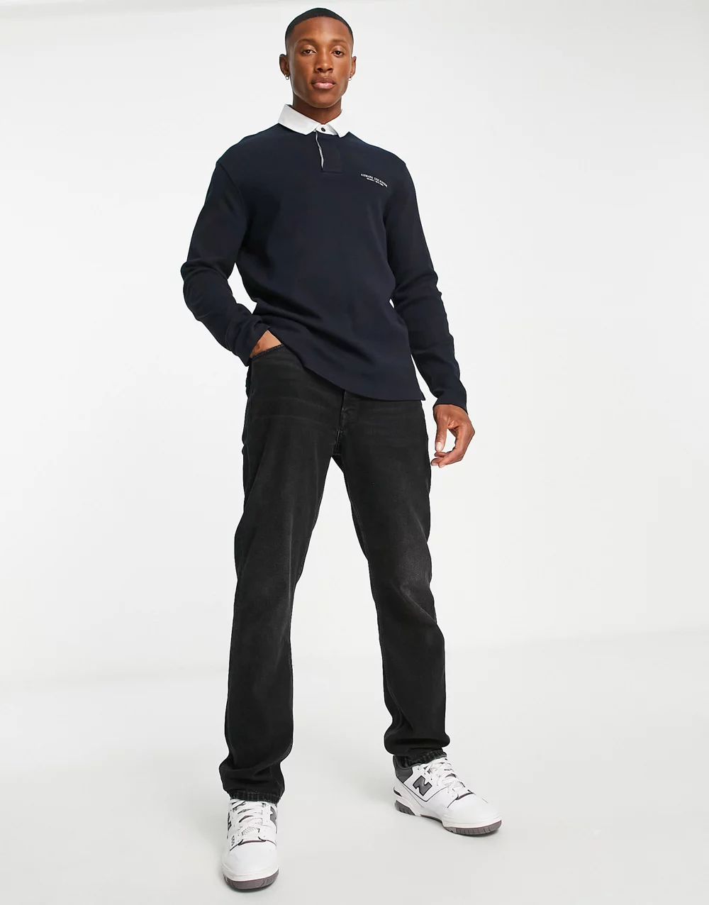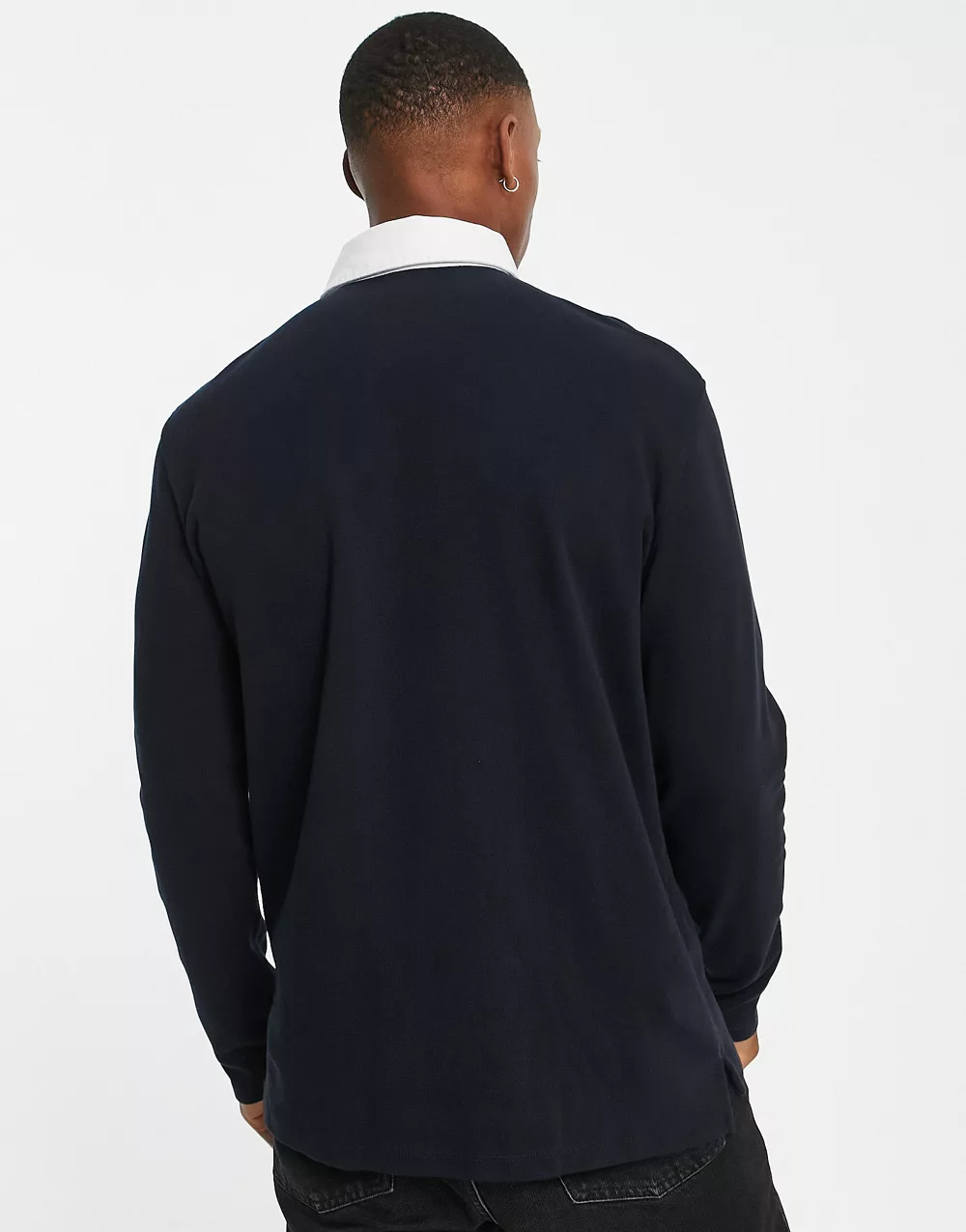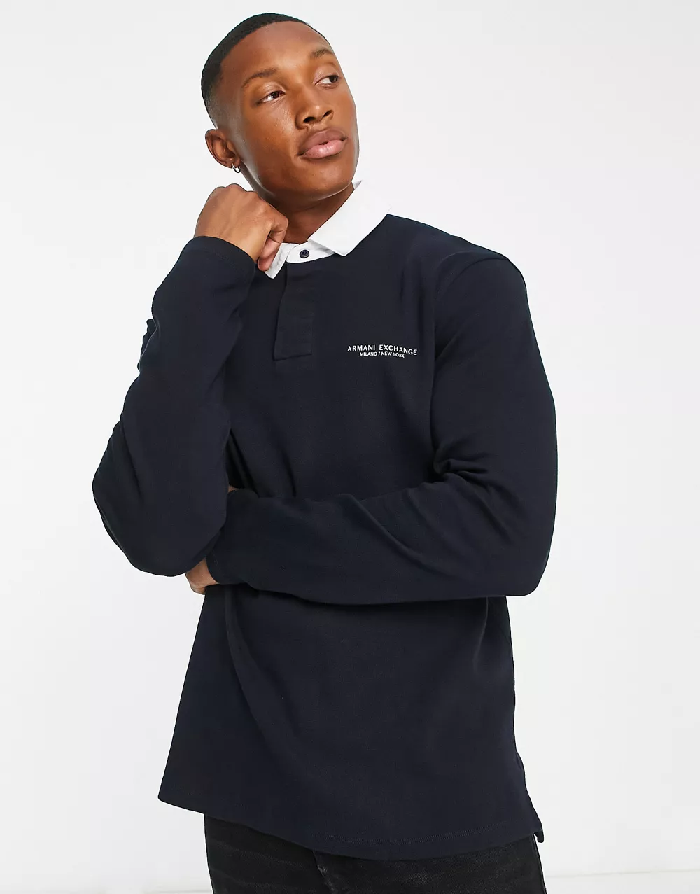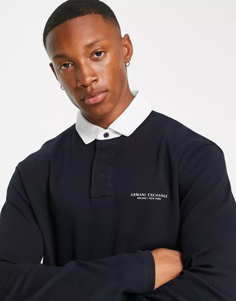 - Armani Exchange contrast collar long sleeve polo shirt in navy