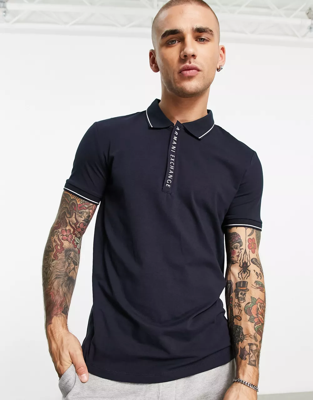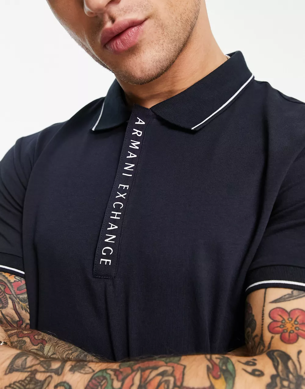 - Armani Exchange logo collar polo shirt in navy