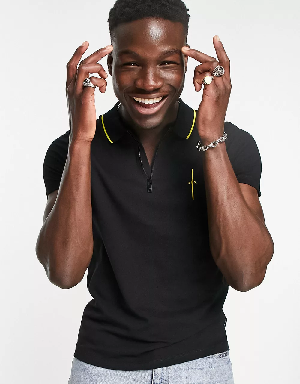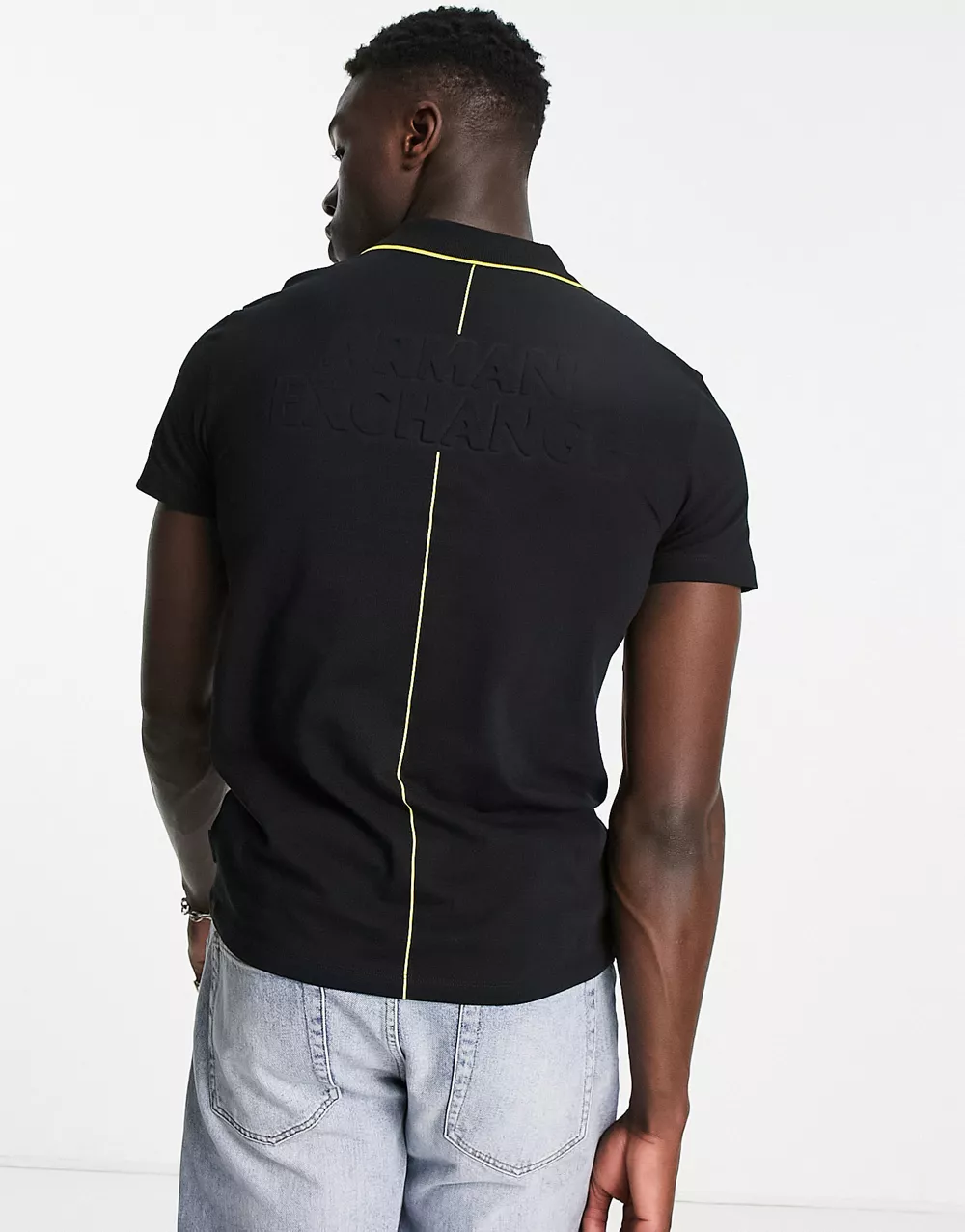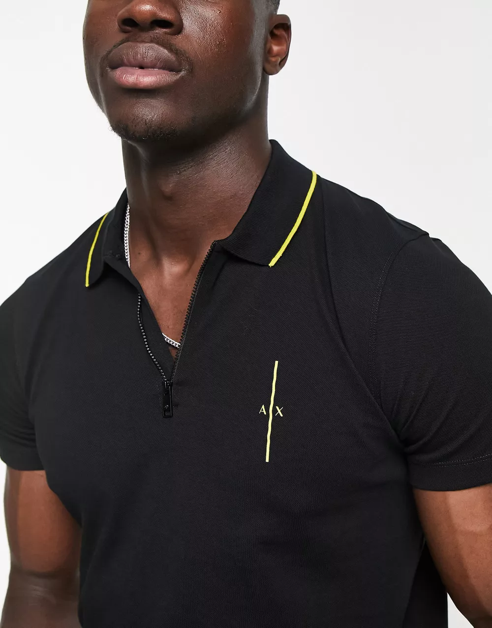 - Armani Exchange zip neck polo with debossed back branding in black