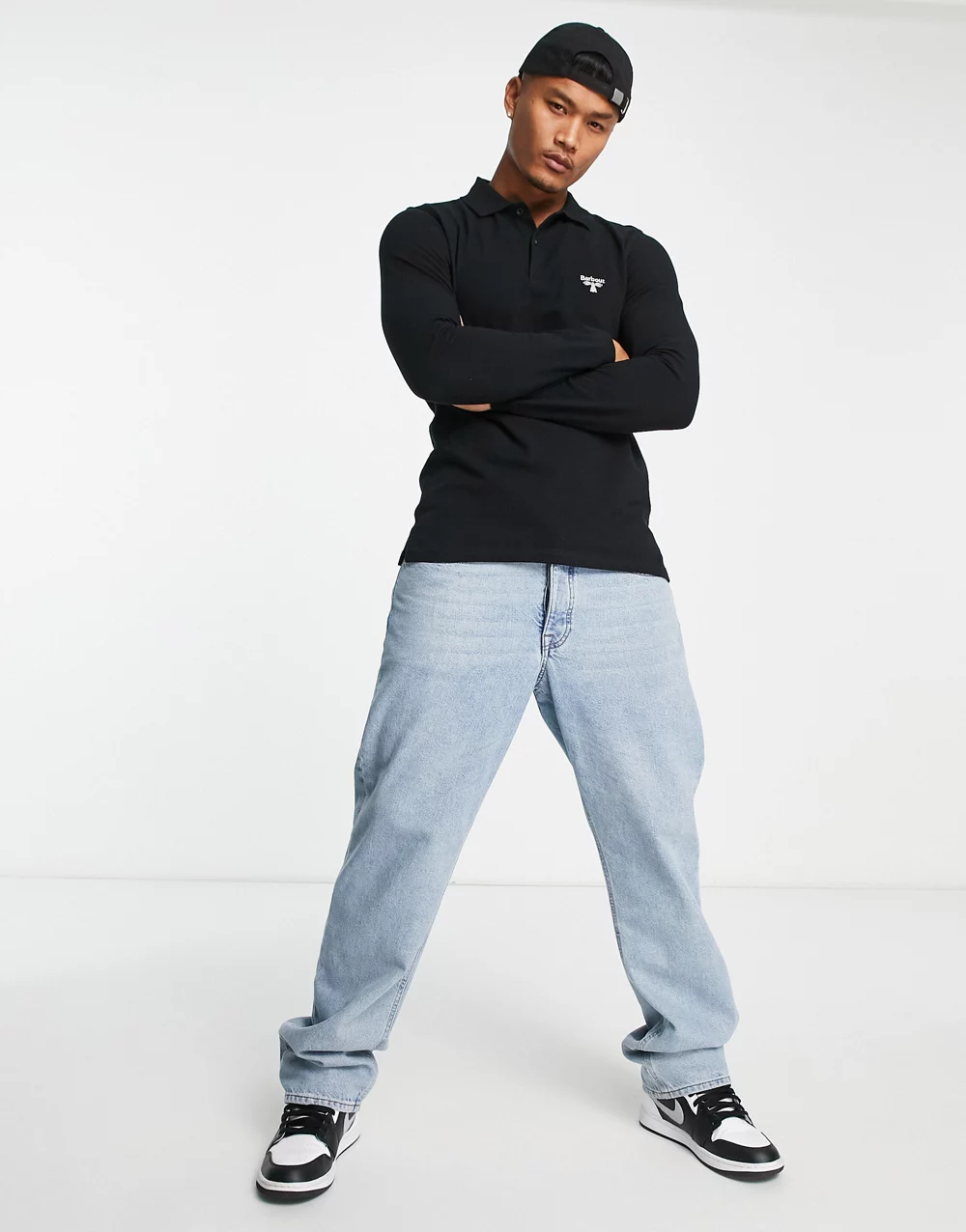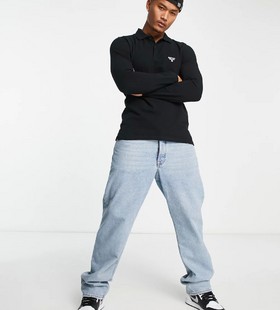 AllSaints Statten knitted polo shirt in black