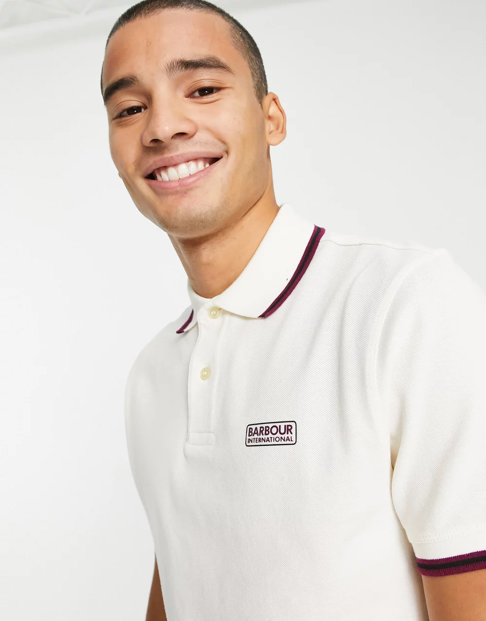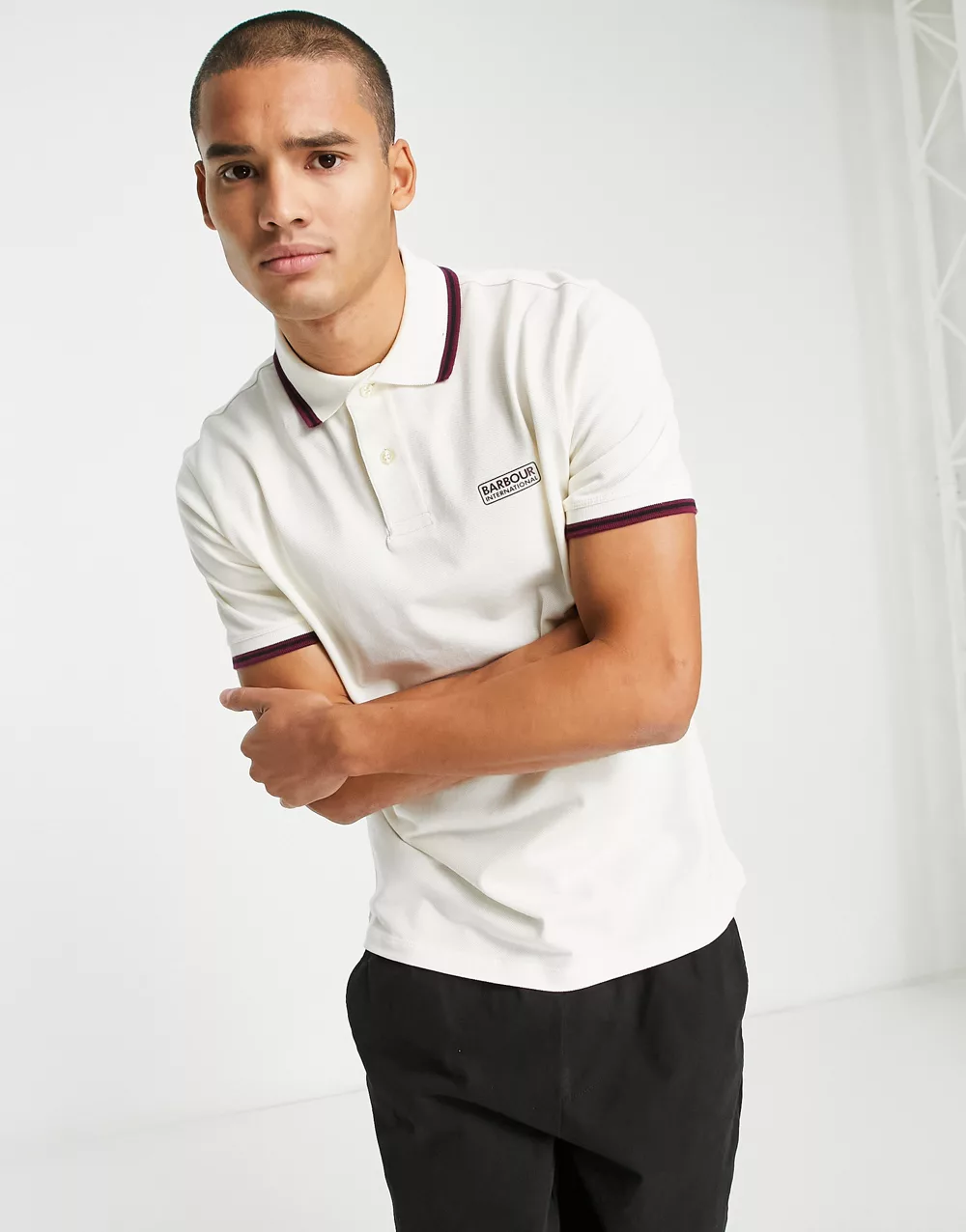 - Barbour International tipped polo in white