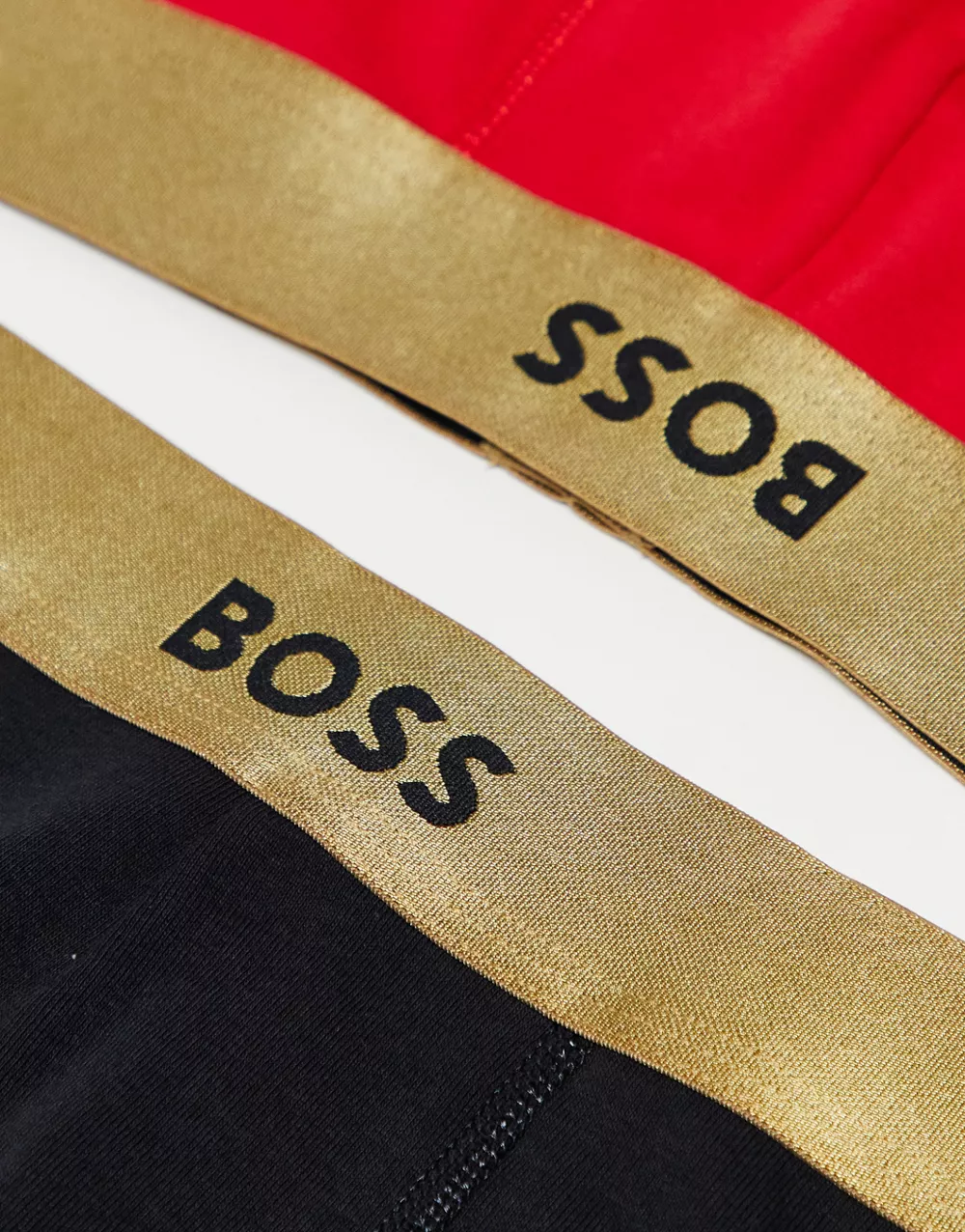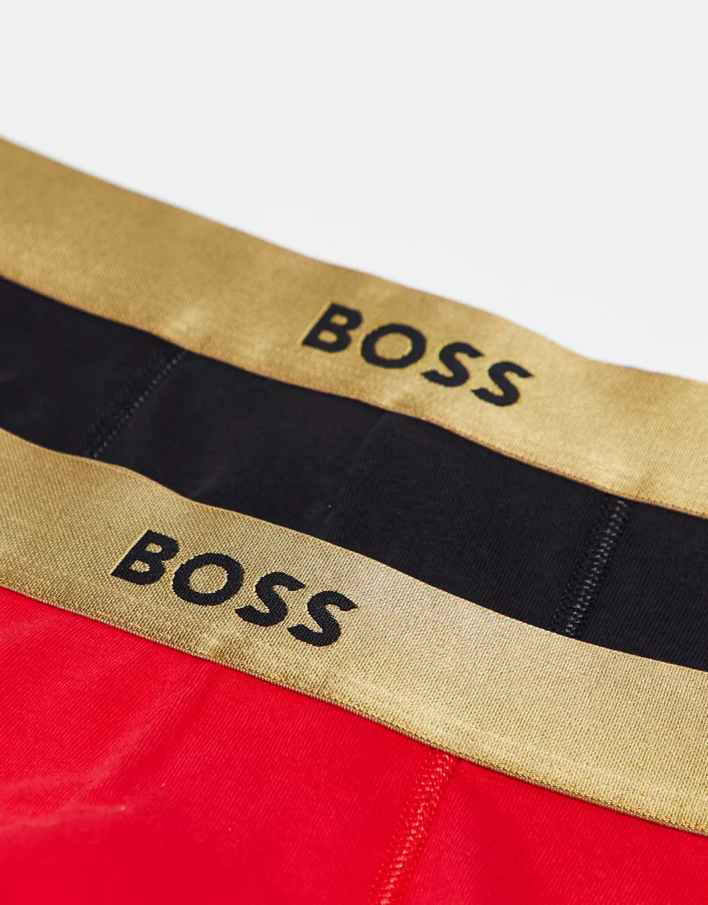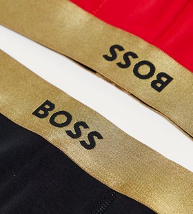 - BOSS Bodywear 2 pack trunks in red and black with gold waistband