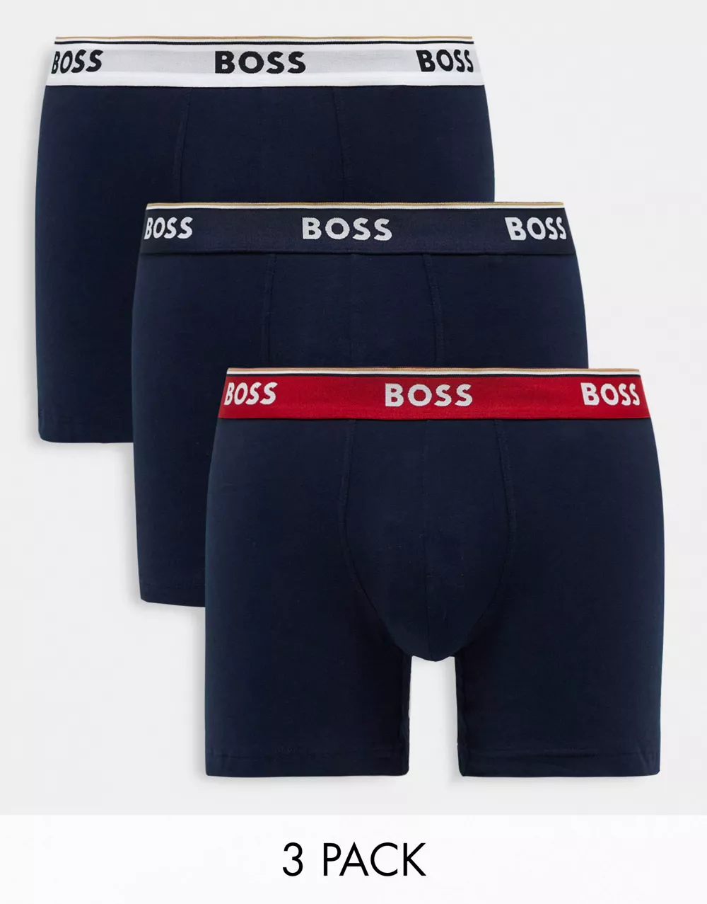 - BOSS Bodywear 3 pack Power boxer briefs in navy with contrast waistband
