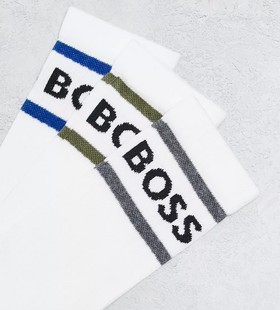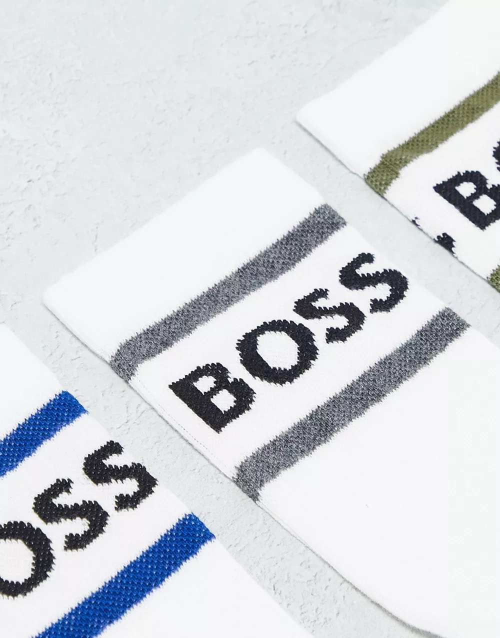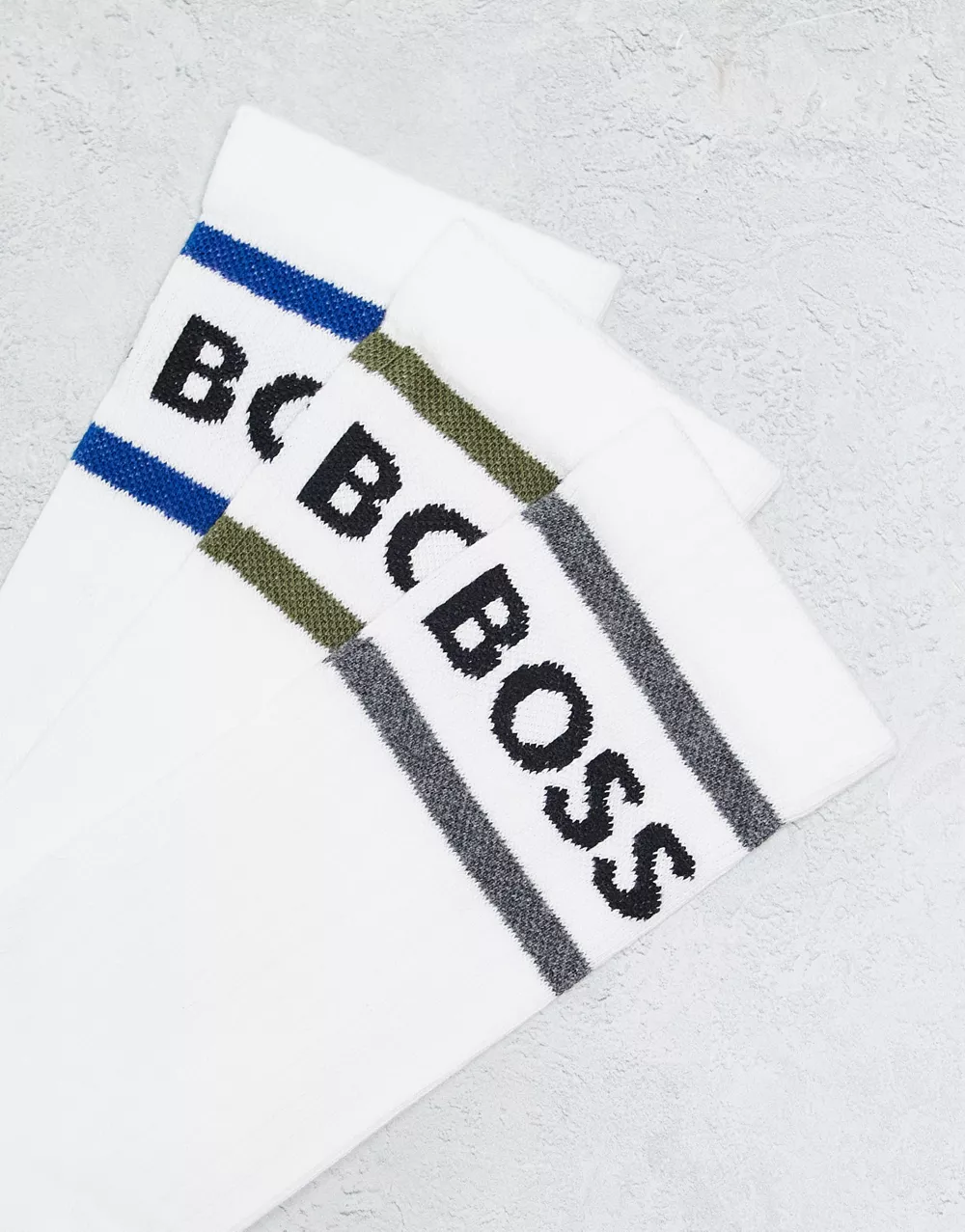- BOSS Bodywear 3 pack ribbed quarter socks in white