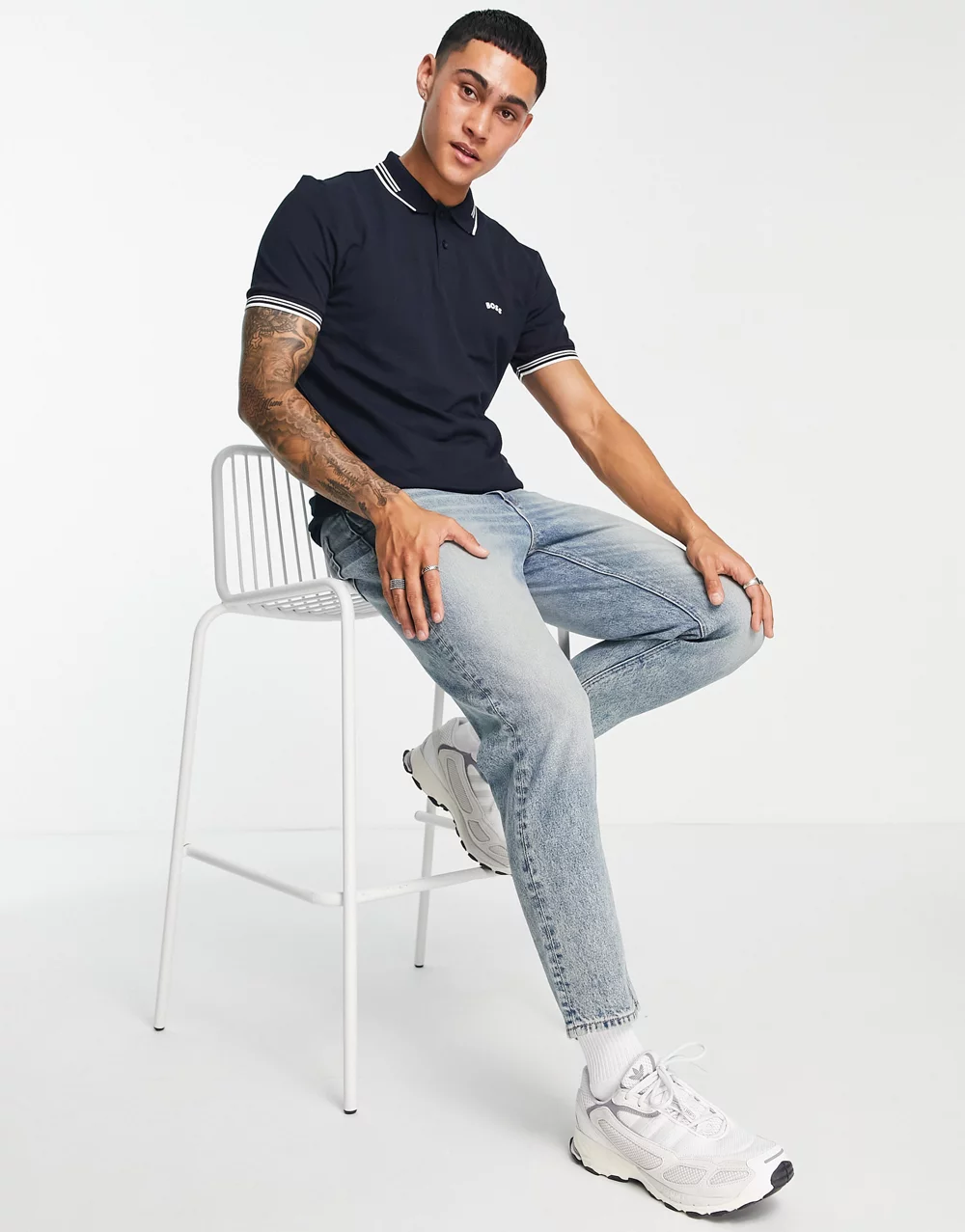 - BOSS Green Paul Curved polo shirt in navy