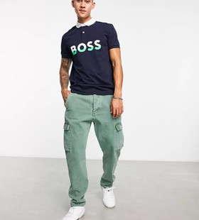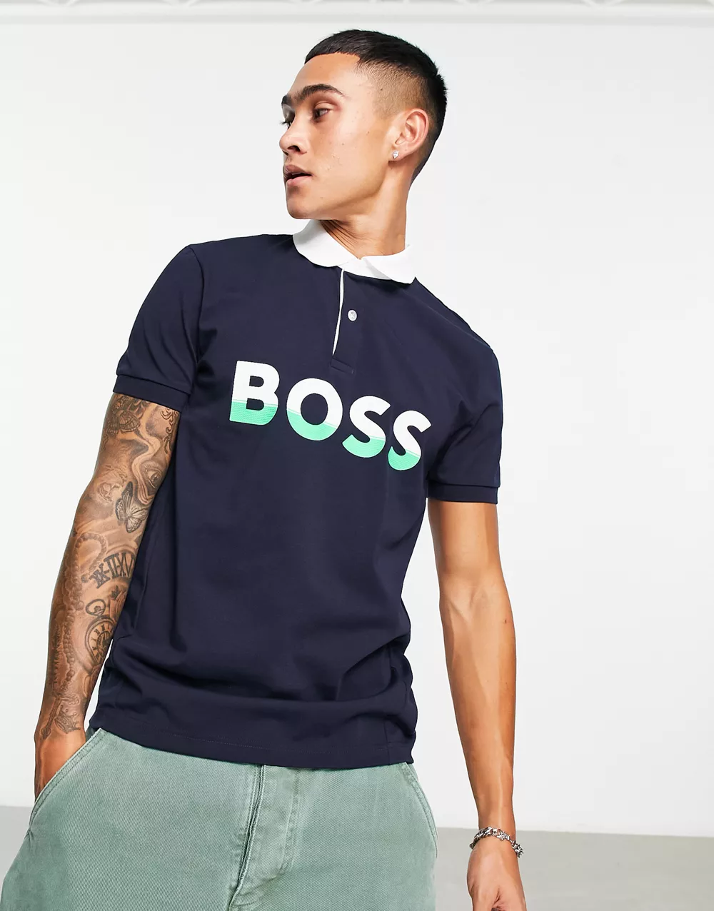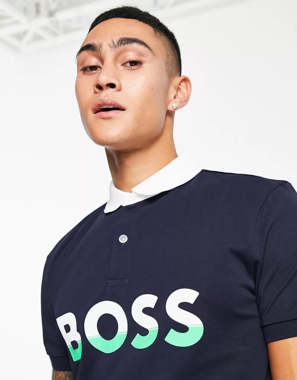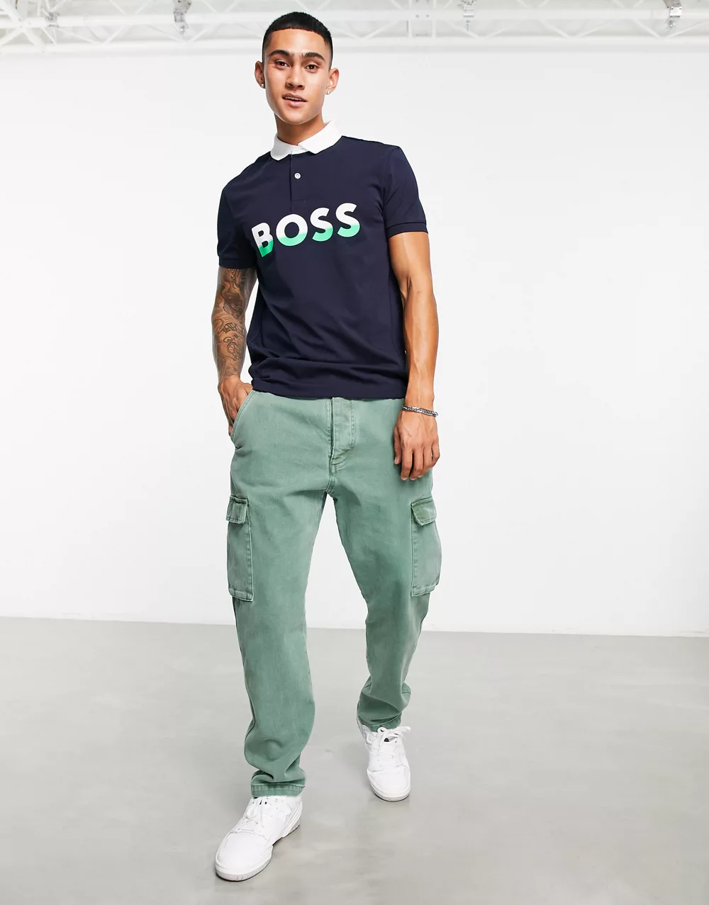 - BOSS Green Pavel large logo short sleeve polo in navy
