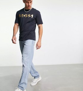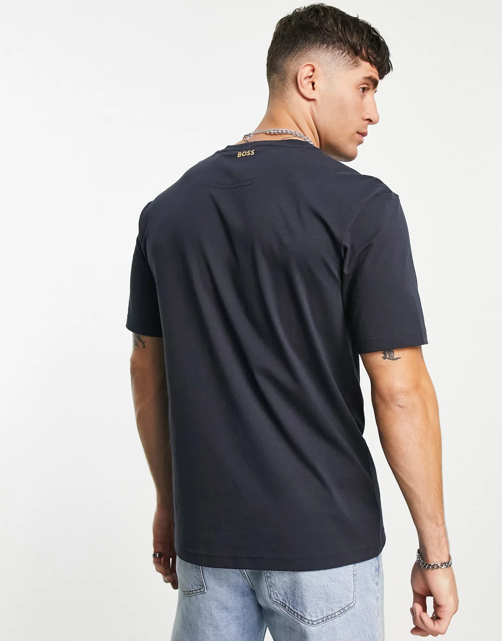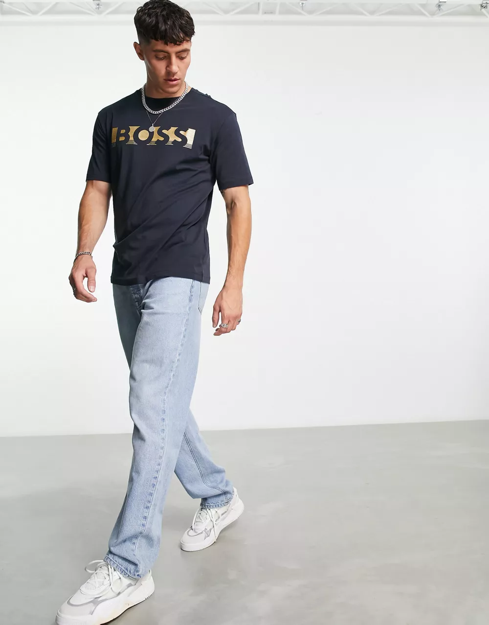 Tommy Jeans badge logo stripe long sleeve top relaxed fit in navy