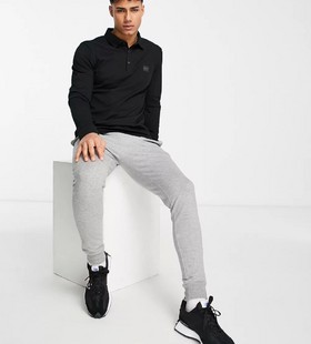 - BOSS Orange Passer by long sleeve polo shirt in black