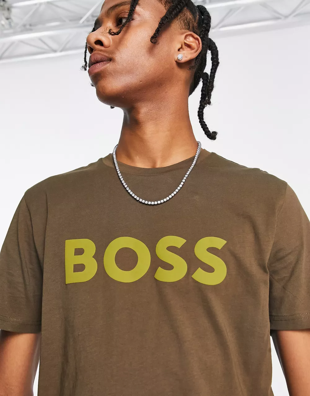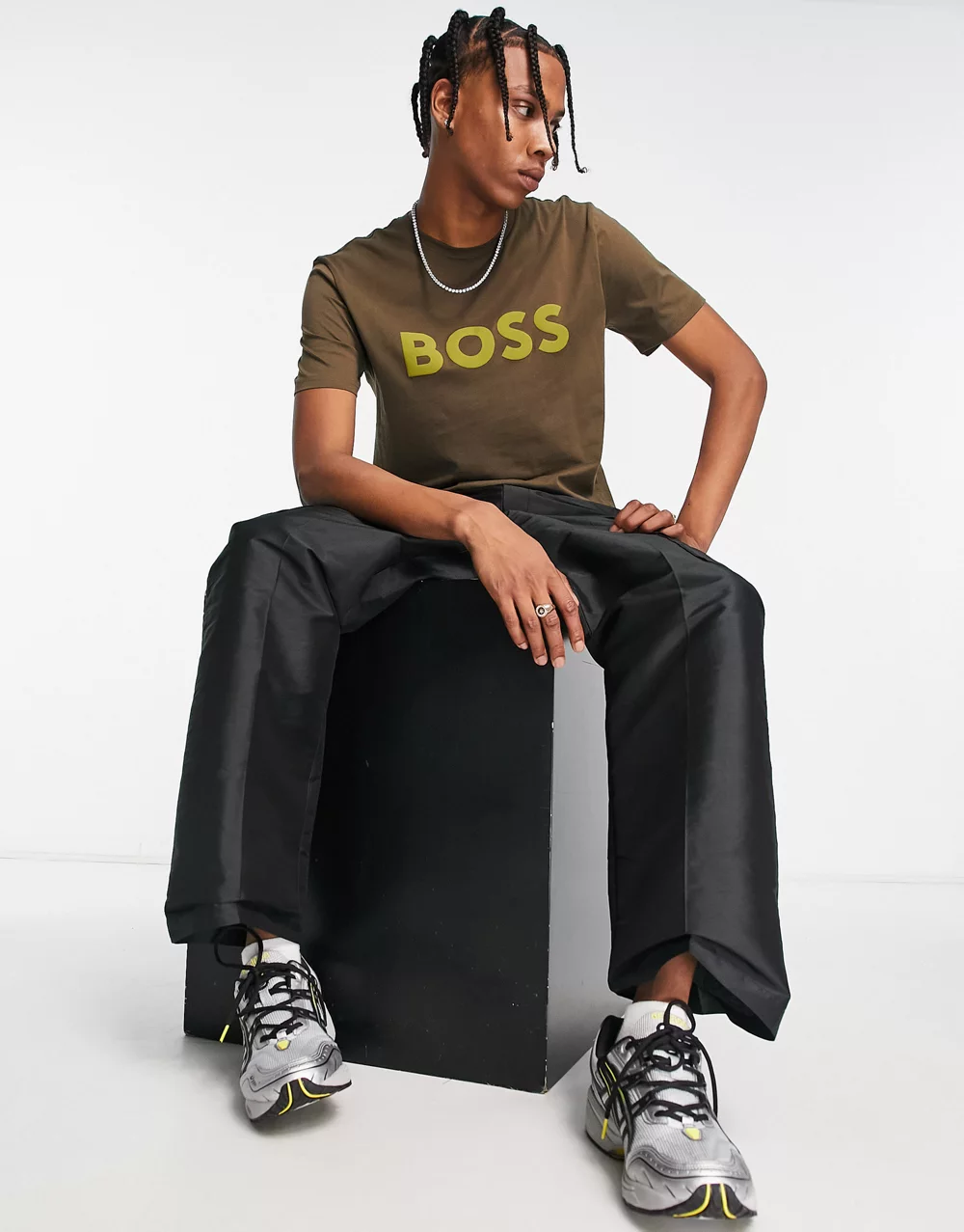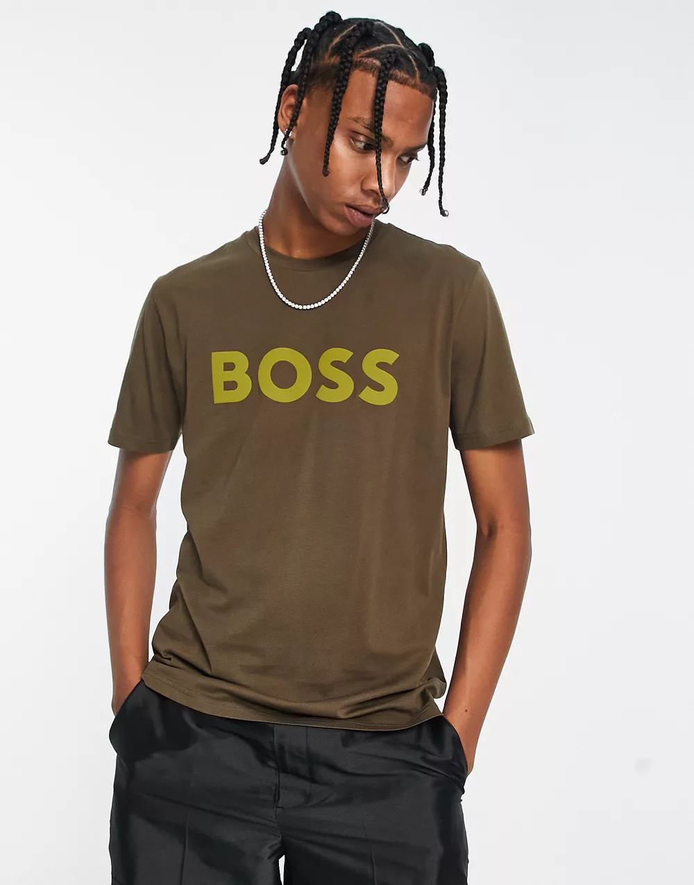 - BOSS Orange Thinking 1 large logo t-shirt in khaki