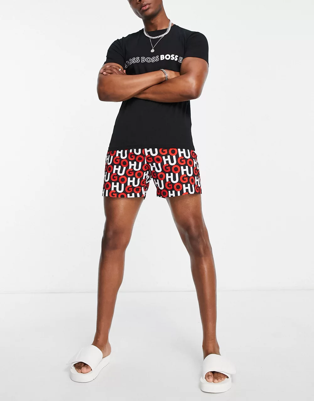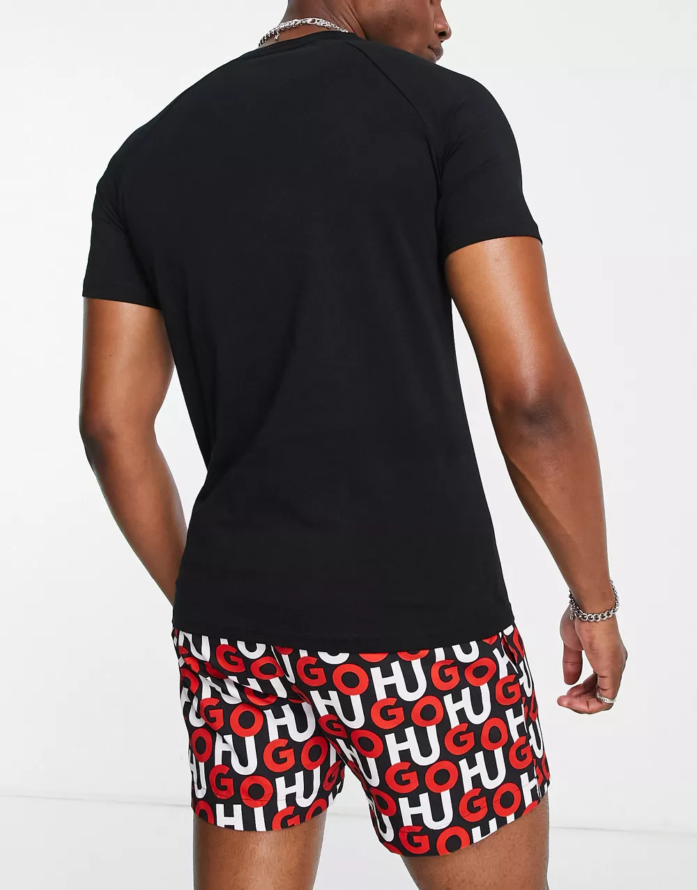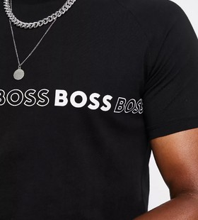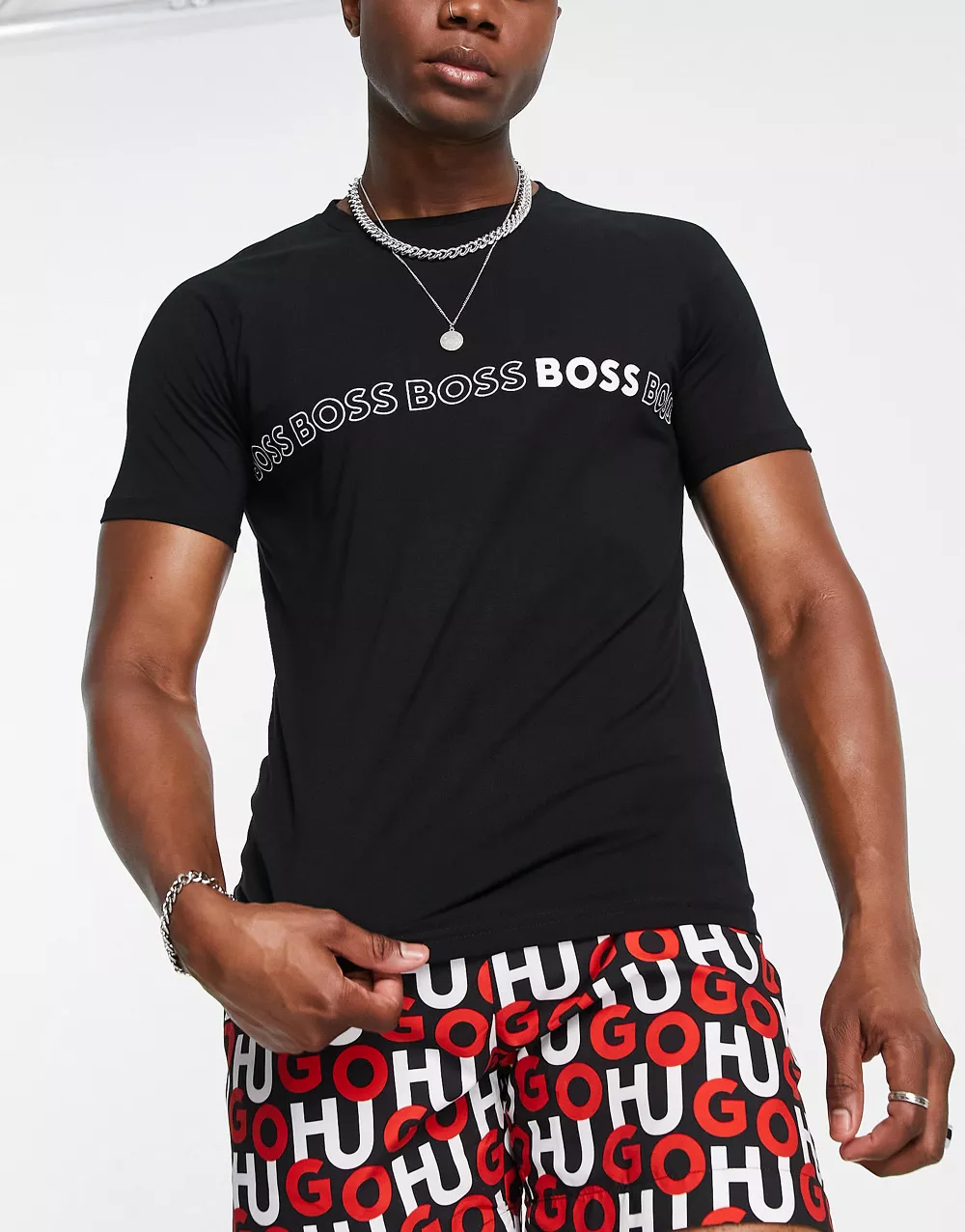 - BOSS Swimwear slim fit t-shirt in black with central repeat logo
