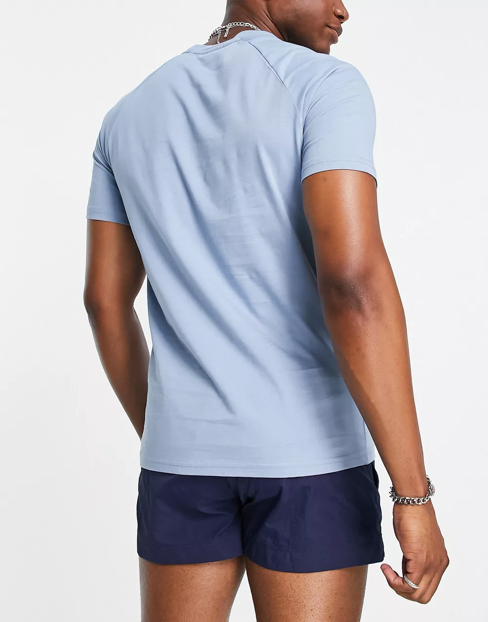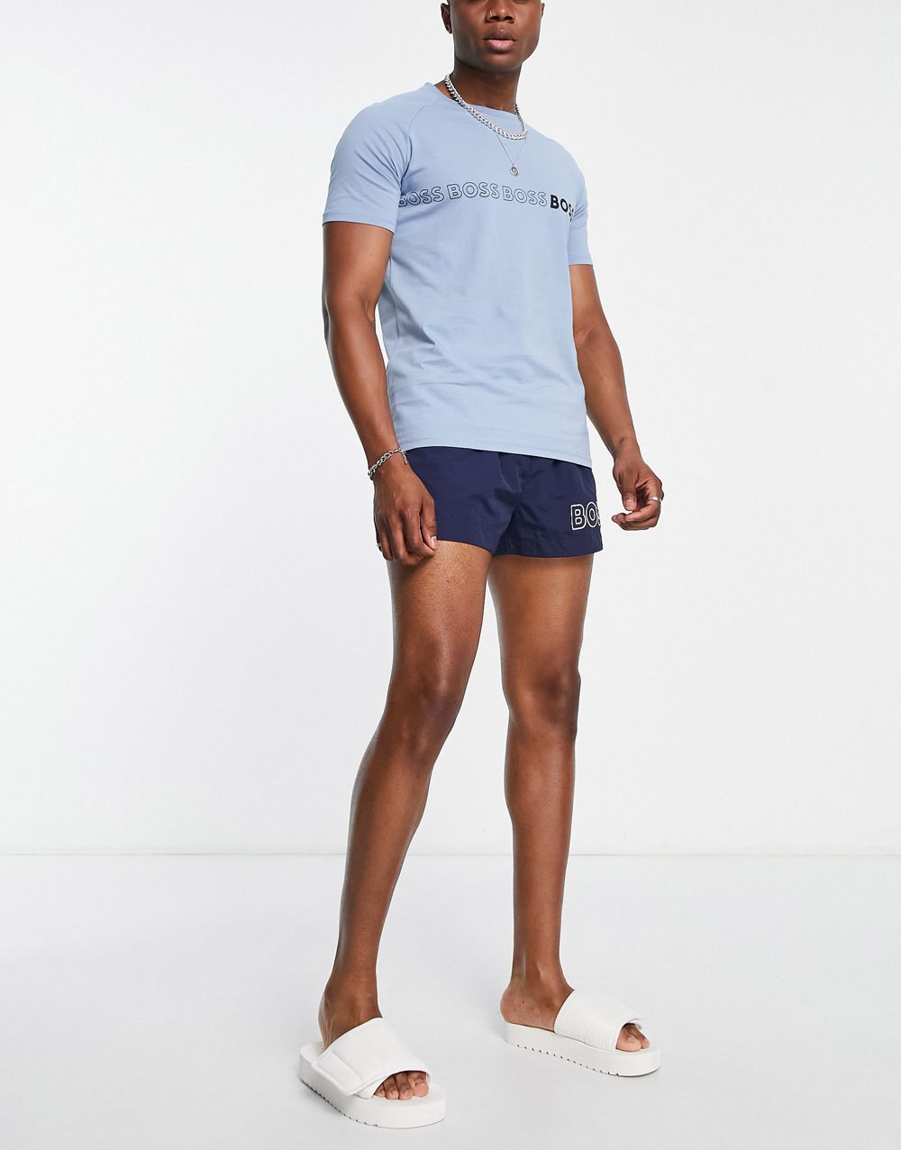 - BOSS Swimwear slim fit t-shirt in light blue with central repeat logo