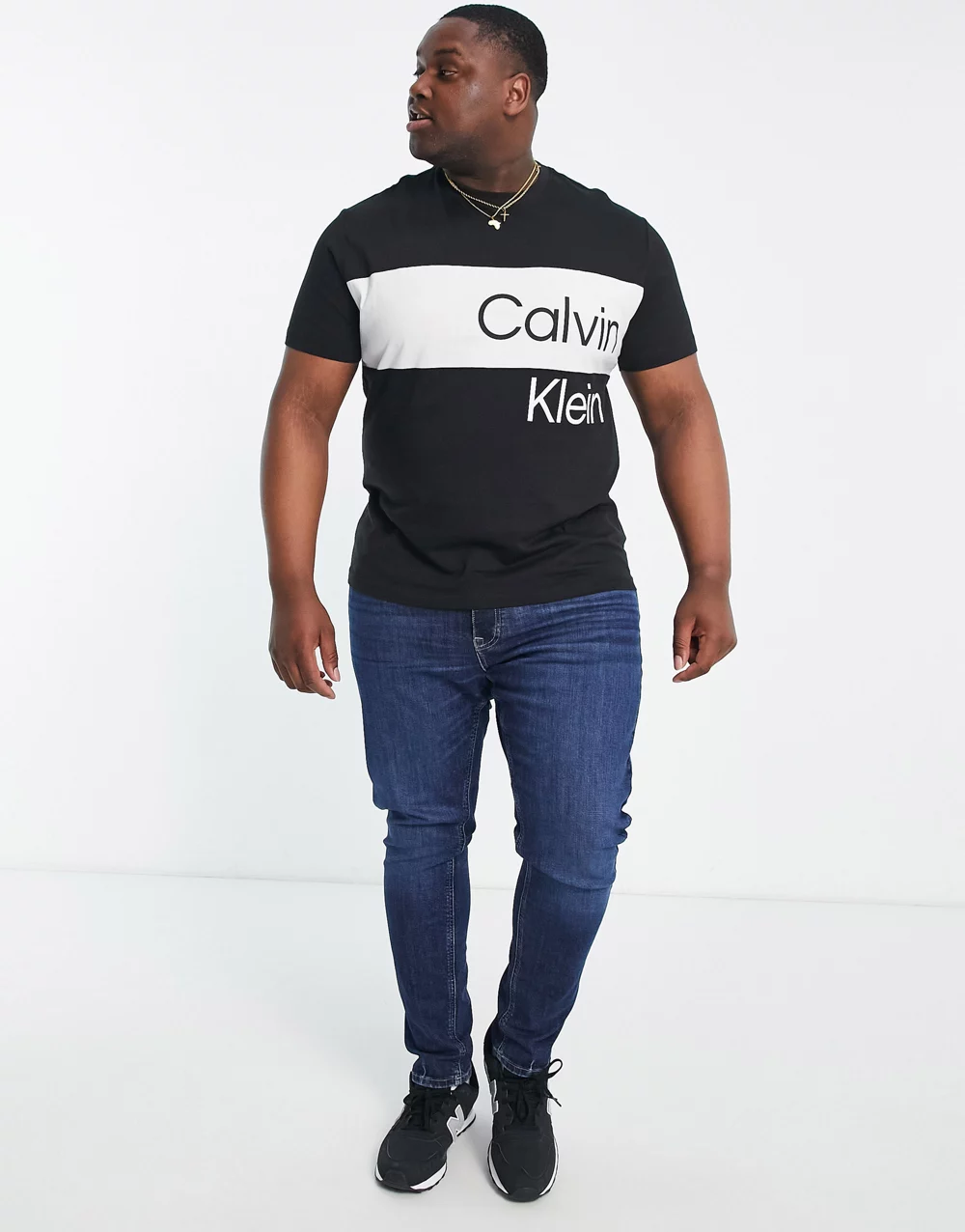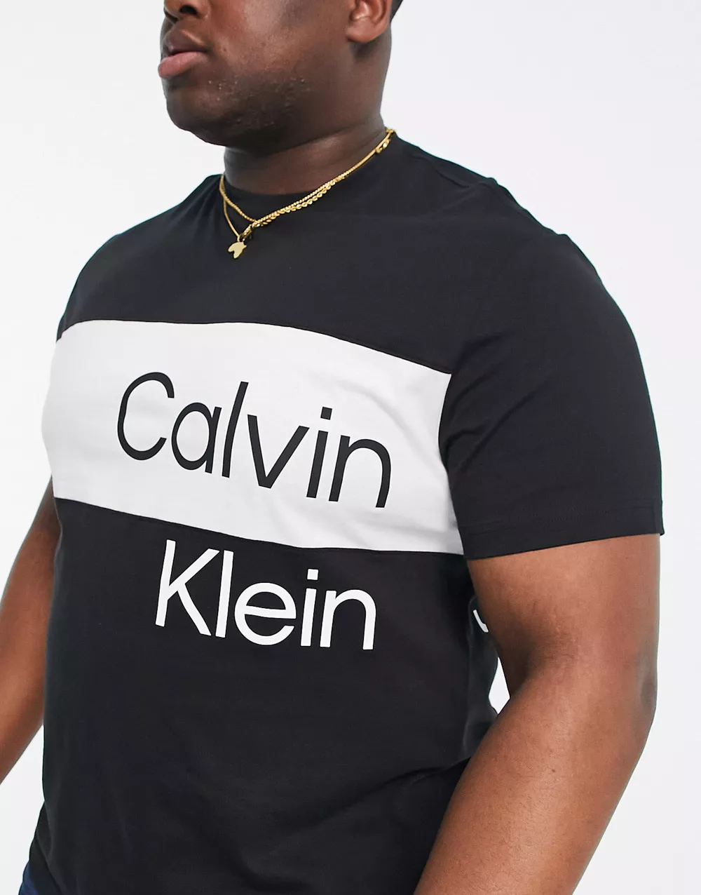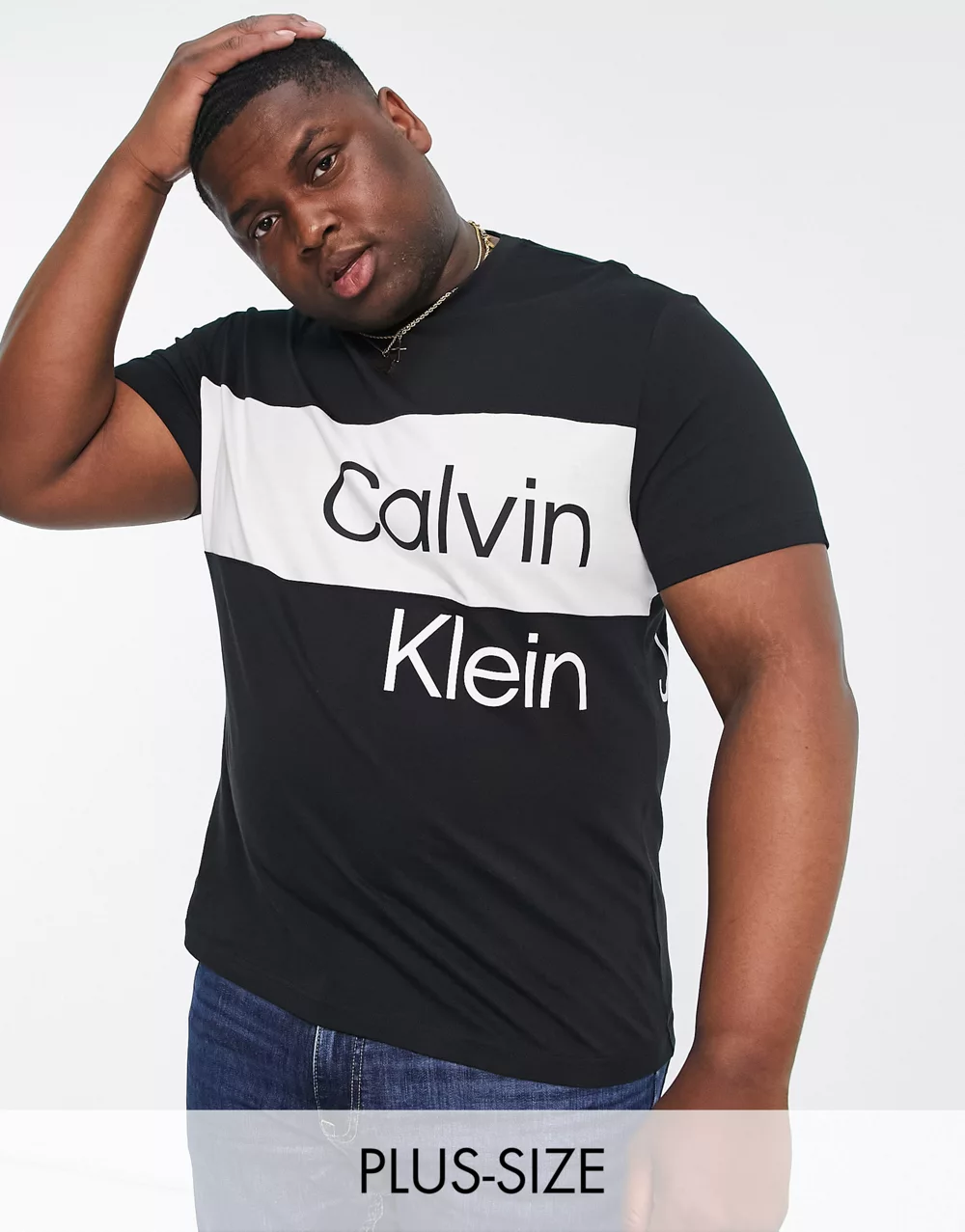 - Calvin Klein Jeans Big & Tall institutional blocking t-shirt in black