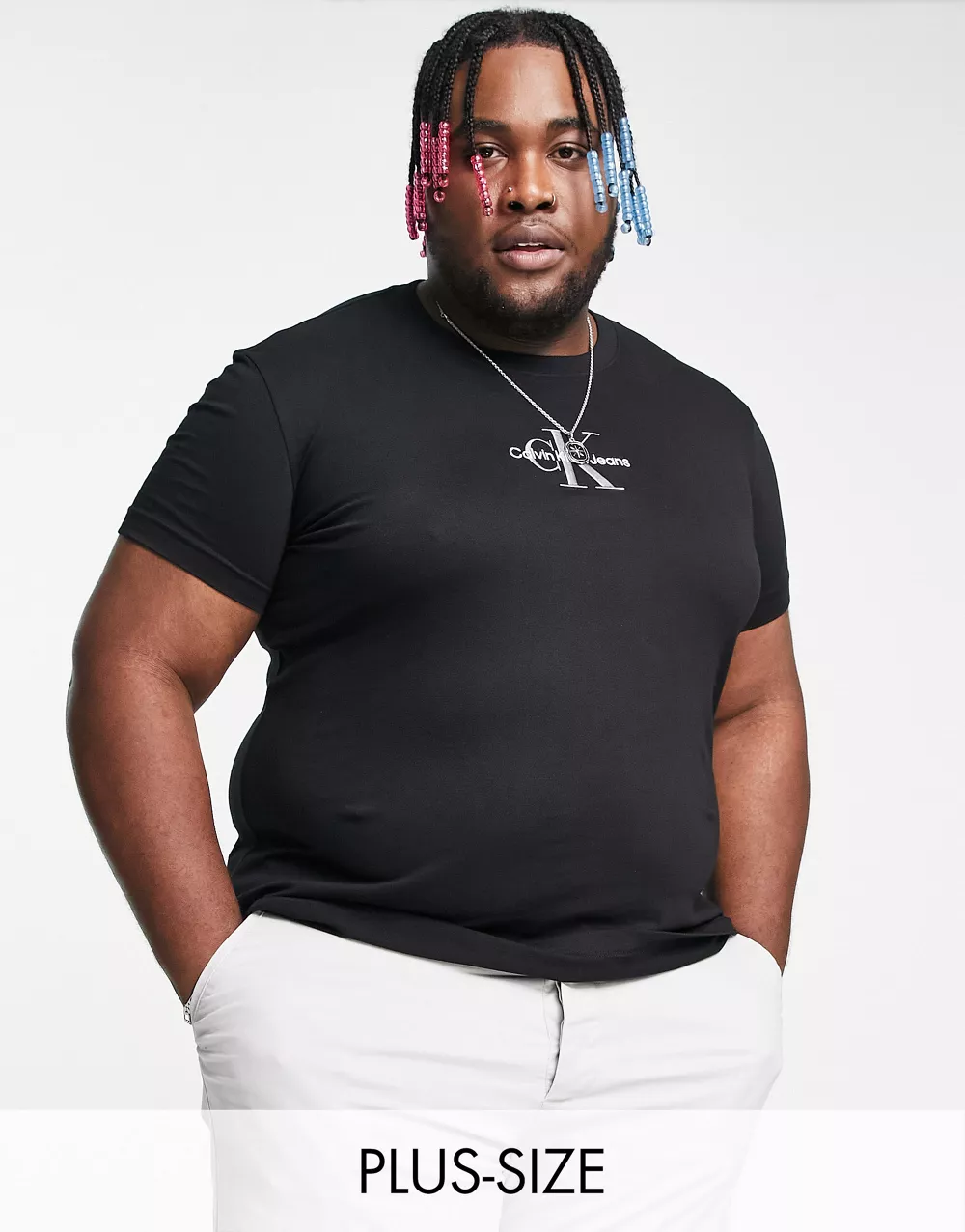 - Calvin Klein Jeans Big & Tall monogram logo t-shirt in black
