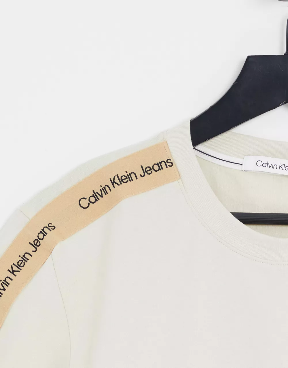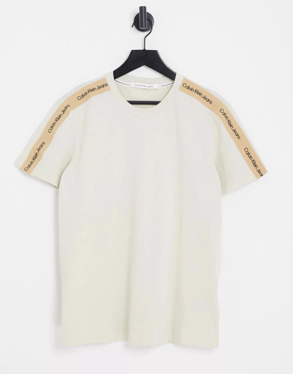 - Calvin Klein Jeans contrast shoulder tape t-shirt in stone