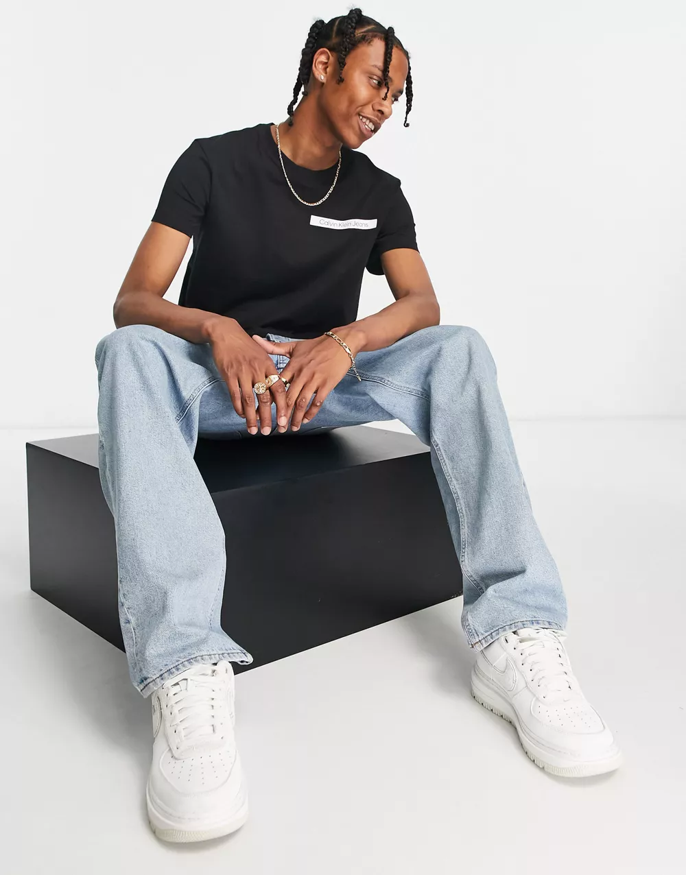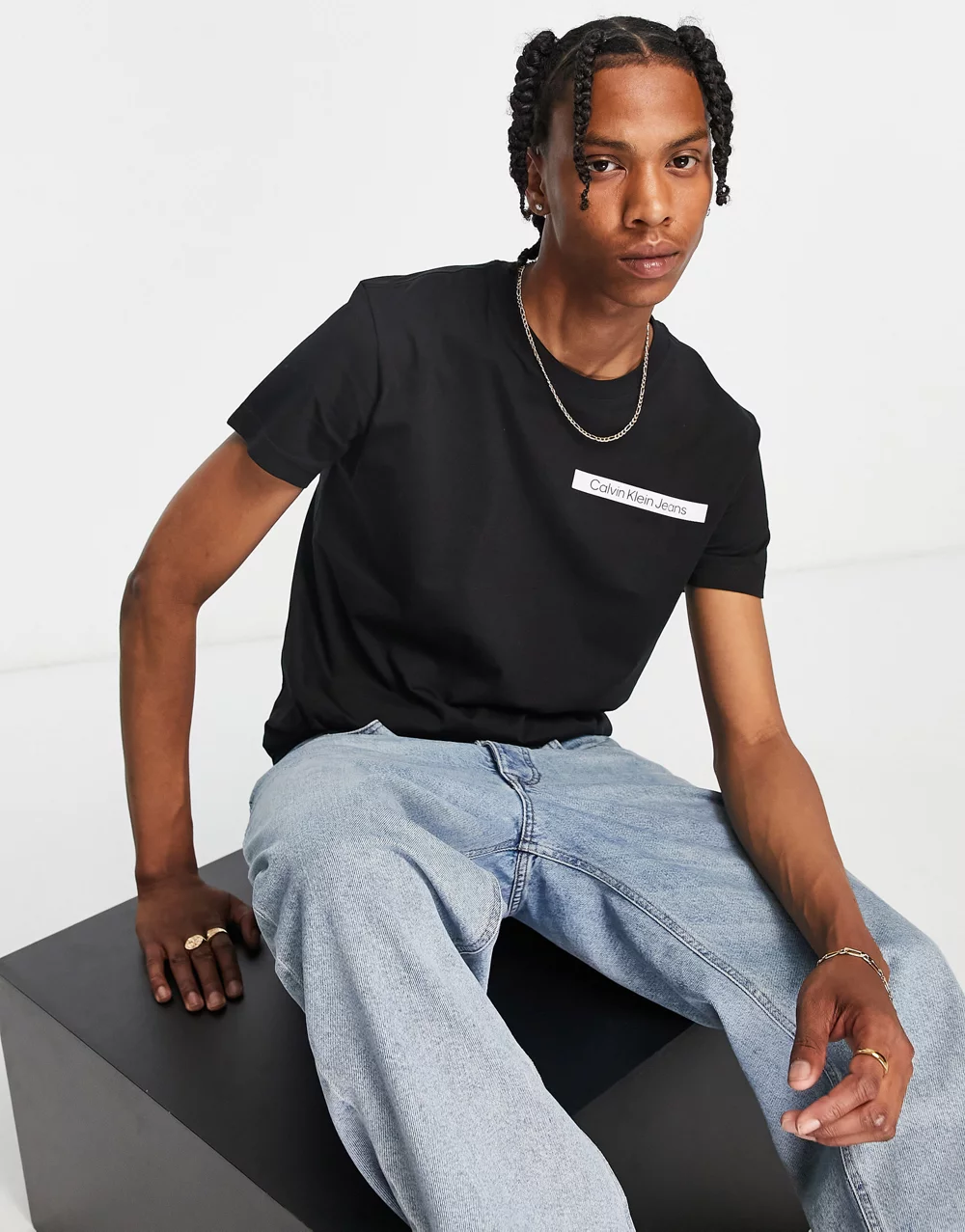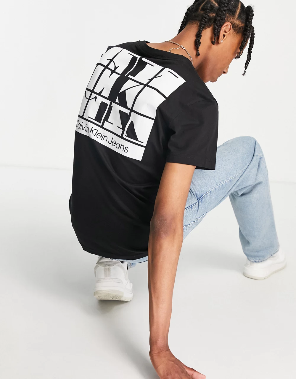 - Calvin Klein Jeans cotton blend scattered urban back graphic t-shirt in black - BLACK