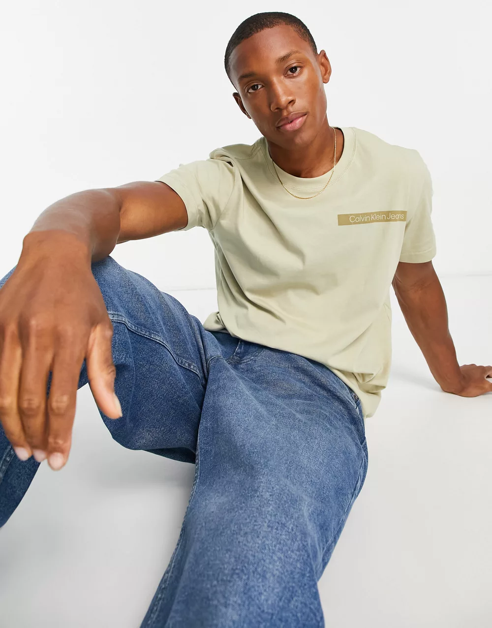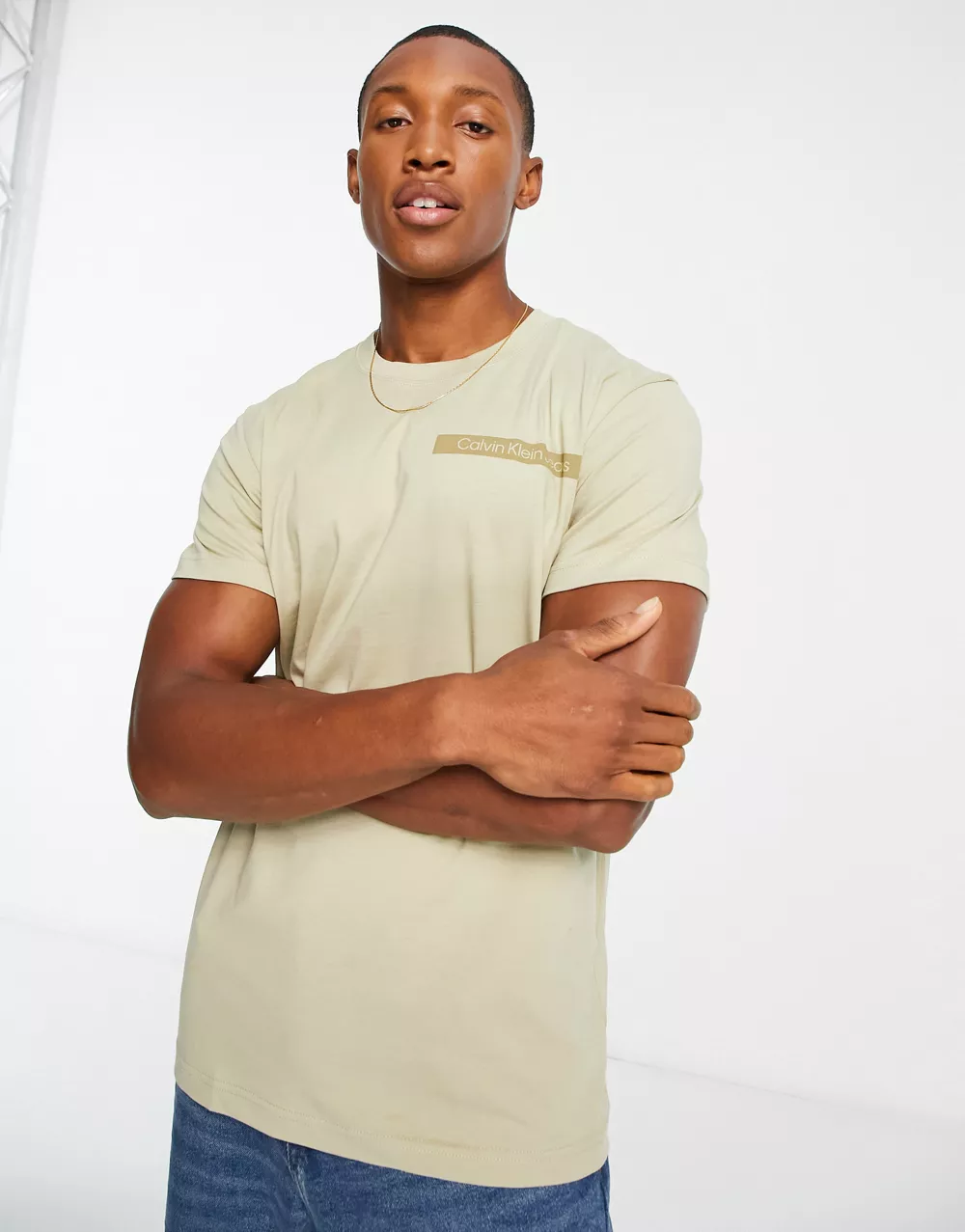 - Calvin Klein Jeans cotton blend scattered urban back graphic t-shirt in stone