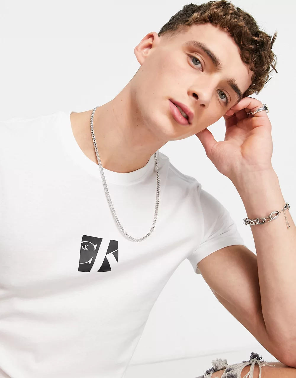 - Calvin Klein Jeans cotton blend small center box t-shirt in white - WHITE