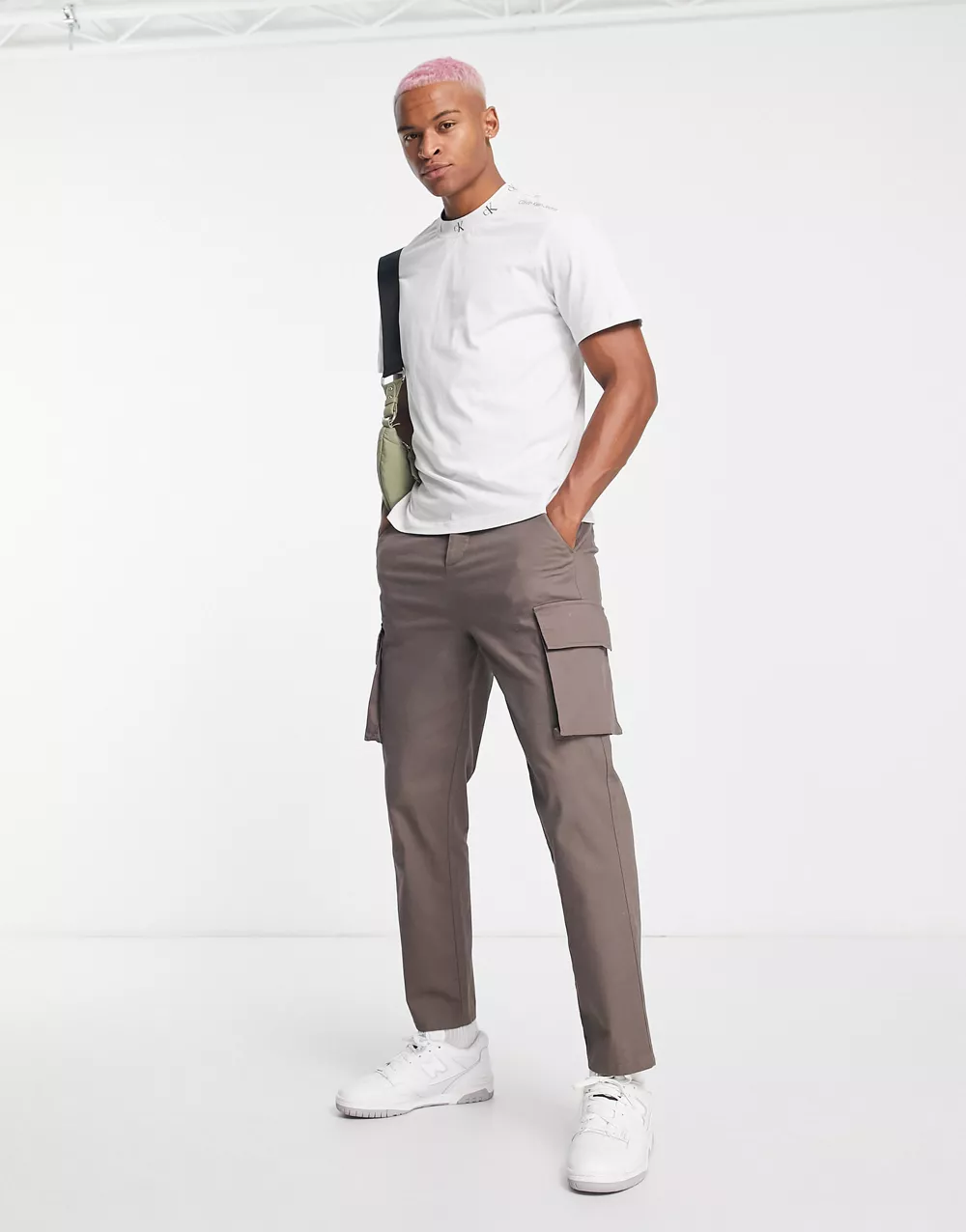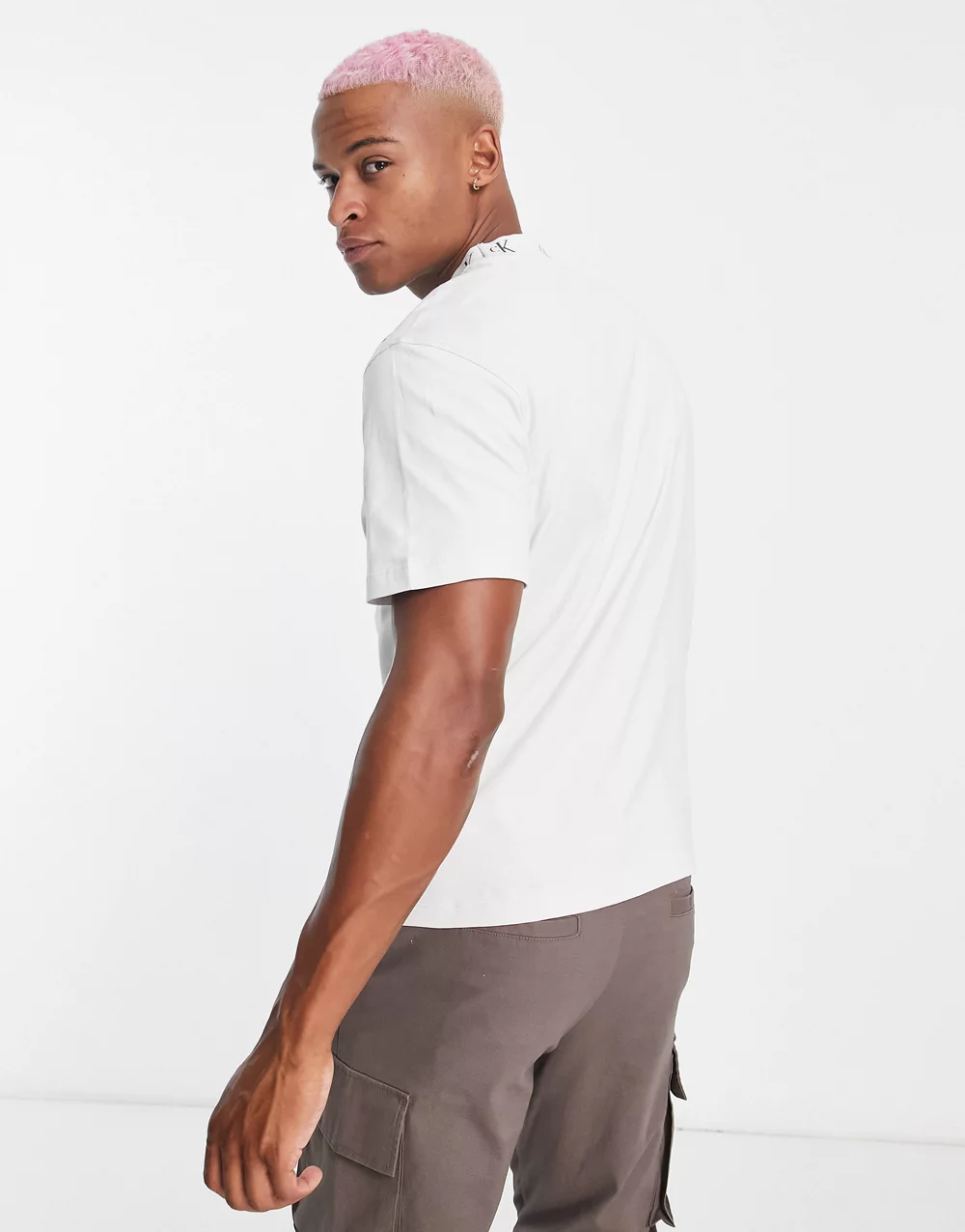 - Calvin Klein Jeans cotton logo jacquard neck t-shirt in light grey