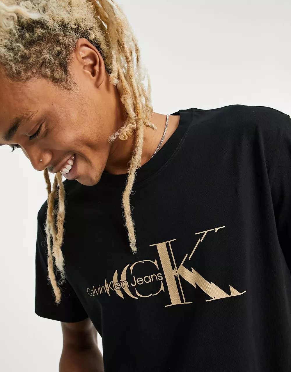 - Calvin Klein Jeans glitched monologo t-shirt in black