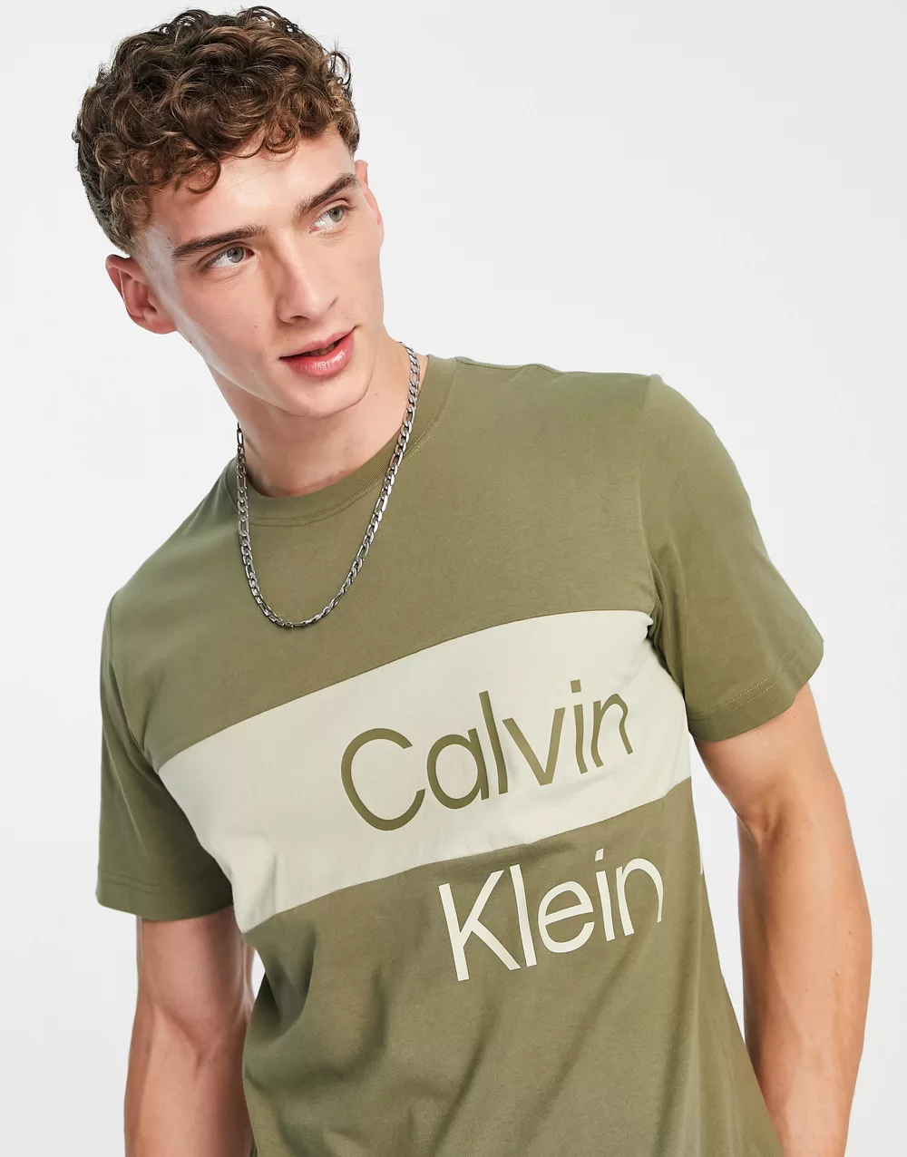 - Calvin Klein Jeans institutional blocking t-shirt in khaki
